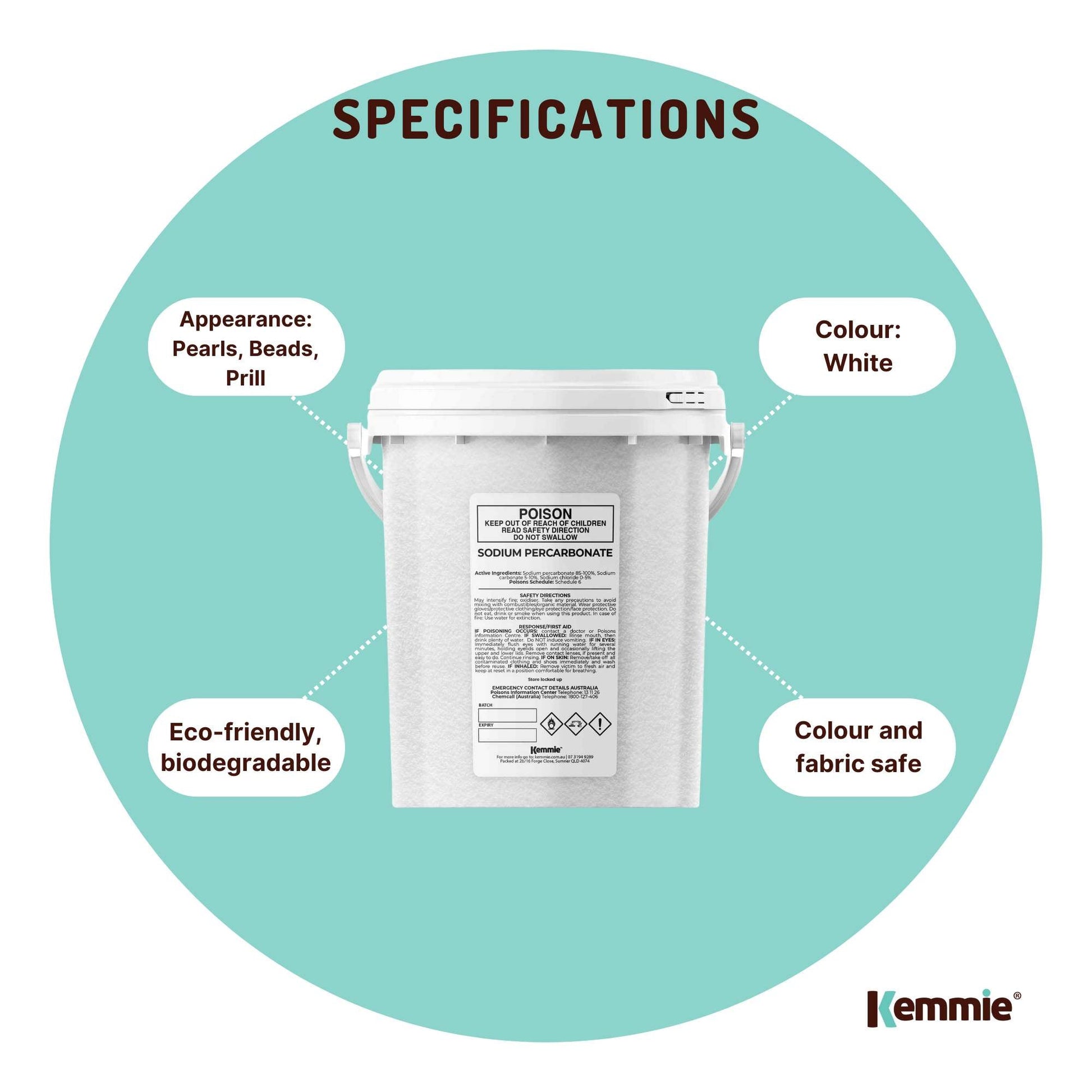 Sodium Percarbonate in resealable buckets.