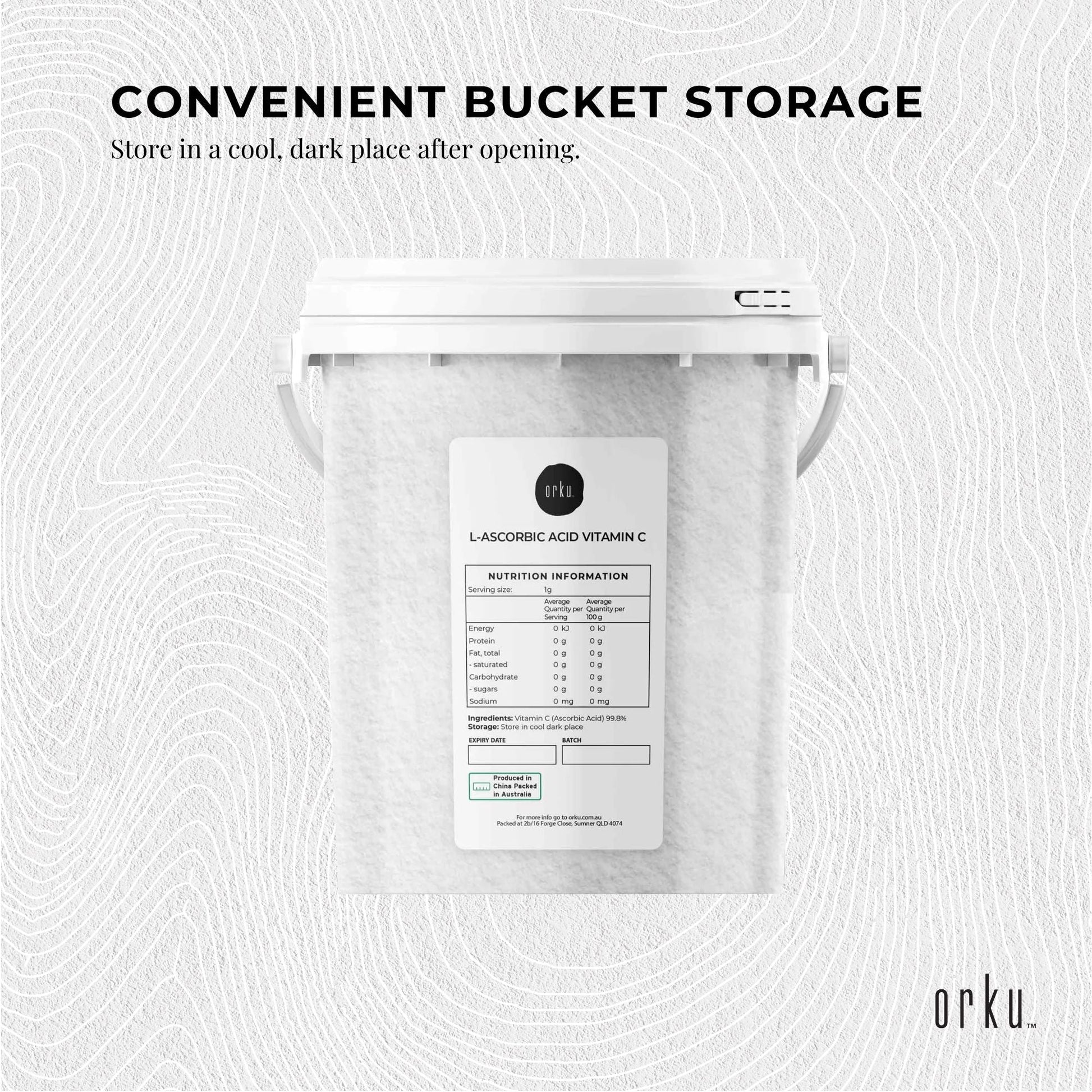 Pure Vitamin C Powder available in in resealable?buckets.