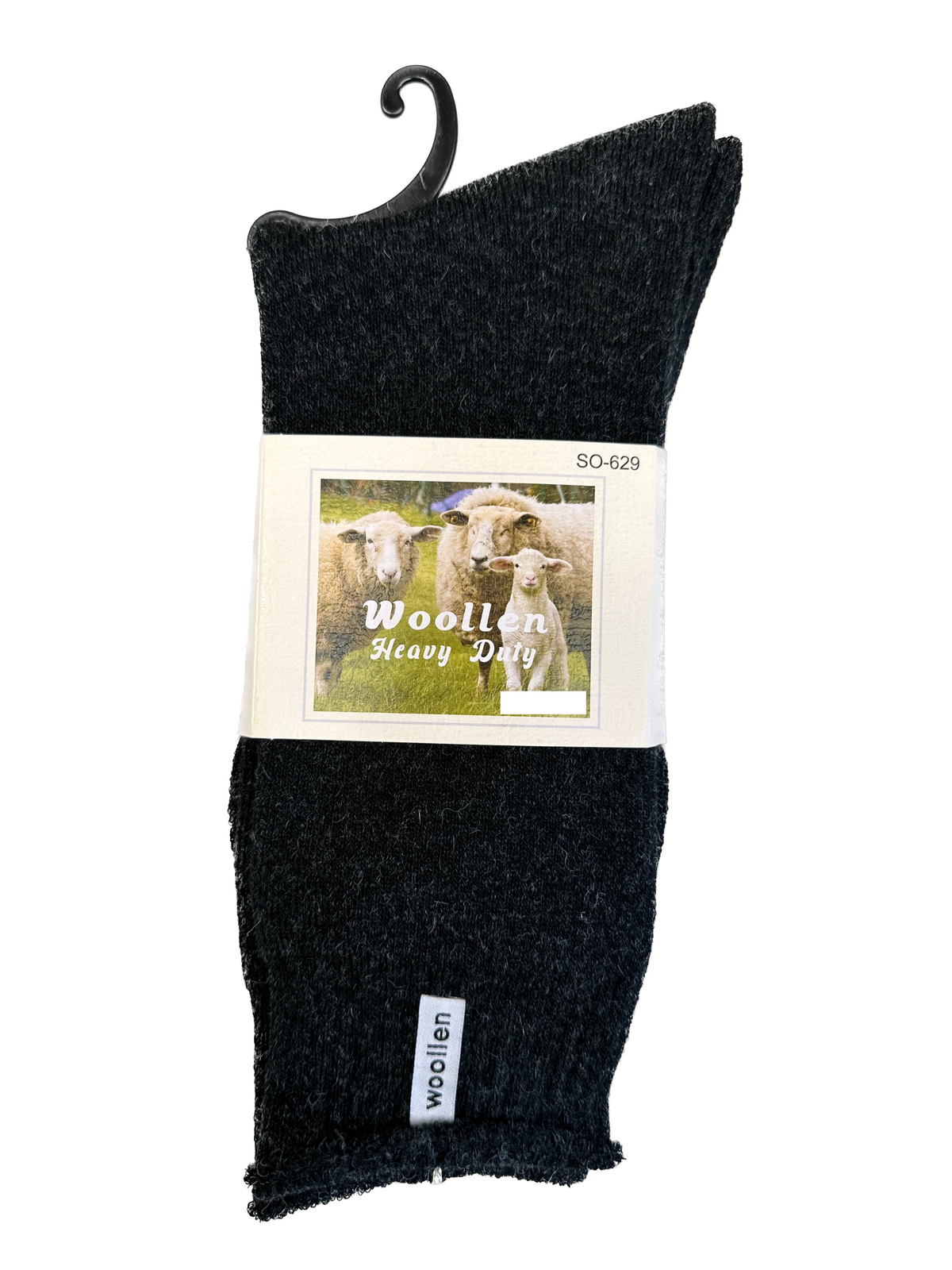 1 Pair Premium Mens Wool Heavy Duty Thick Work Socks Cushion Woolen - Black - 11-14
