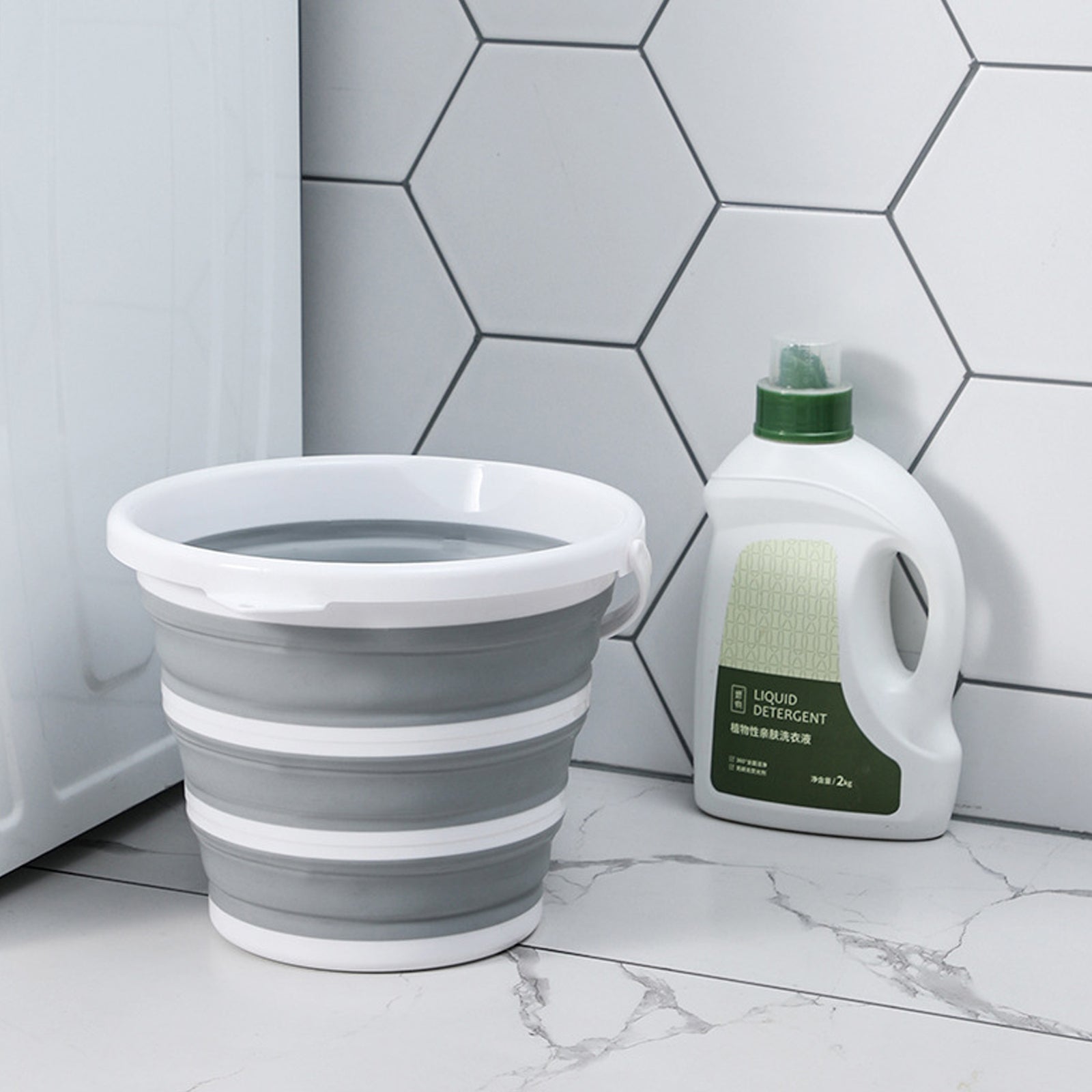 10 Litre Foldable Collapsible Bucket Silicone for Home/Hiking/Camping/Fishing - Grey/White
