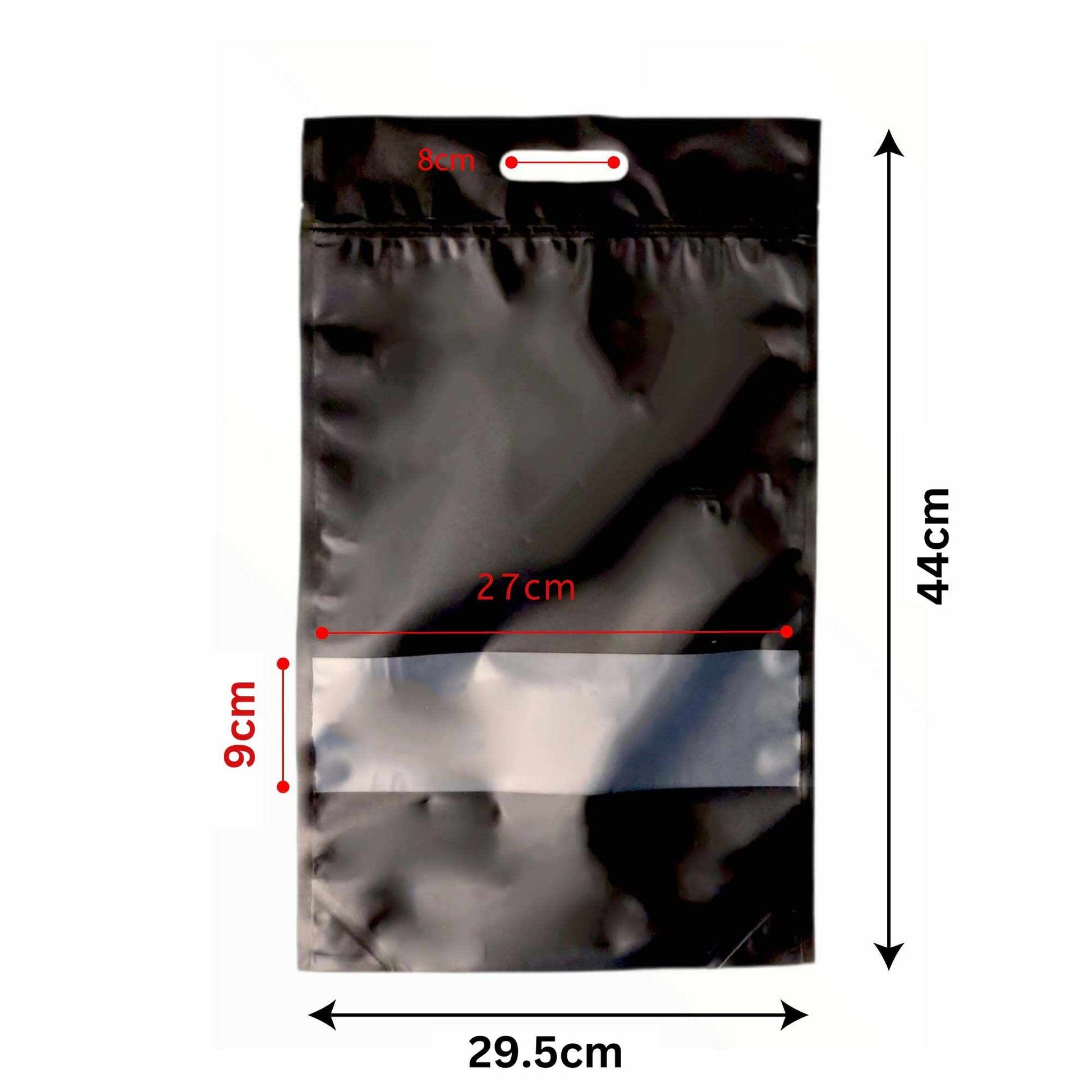 100 Resealable Black Stand Up Bags 44x29.5cm - Food Packaging Zip Handle Pouch