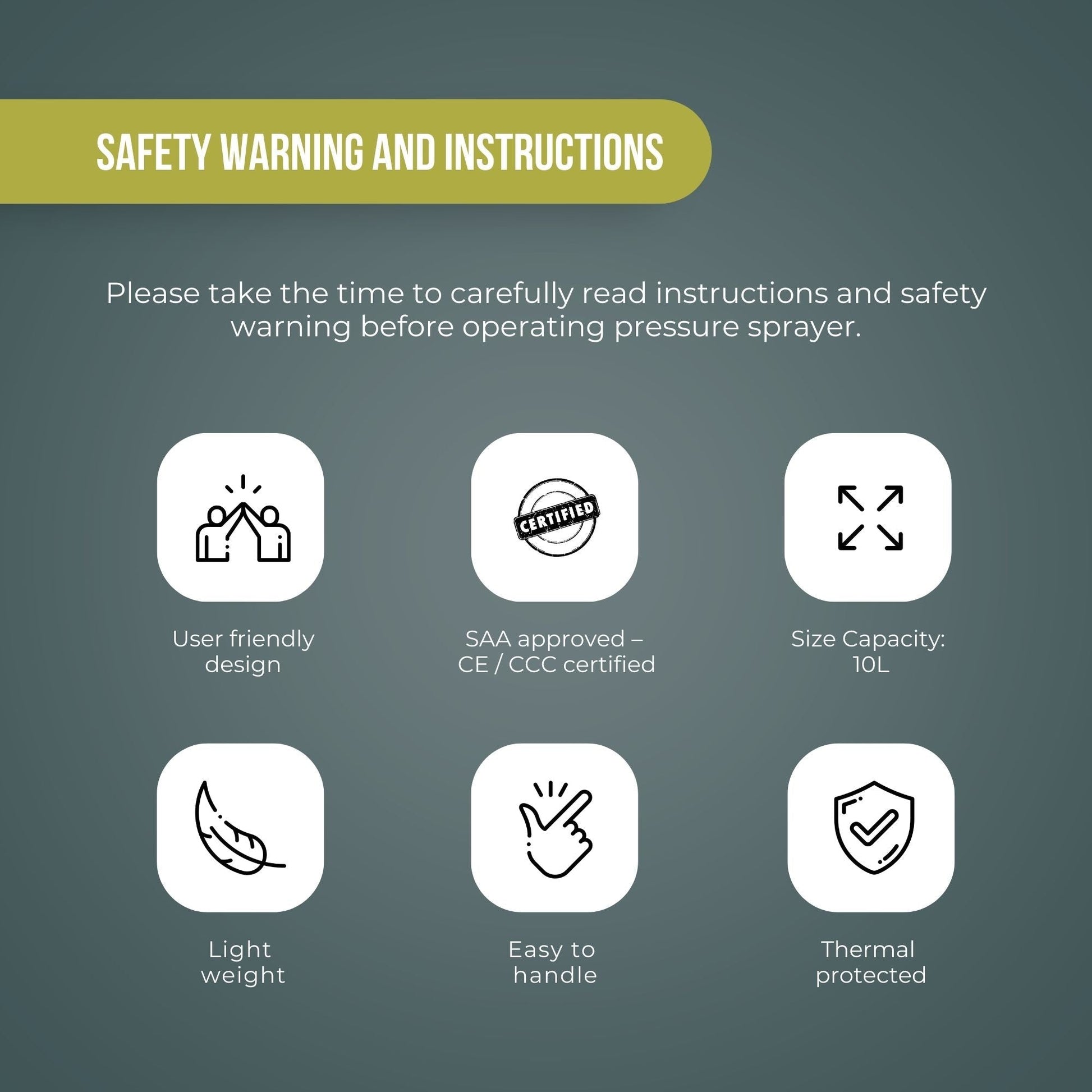 Please take the time to carefully read instructions and safety warning before operating pressure sprayer.
