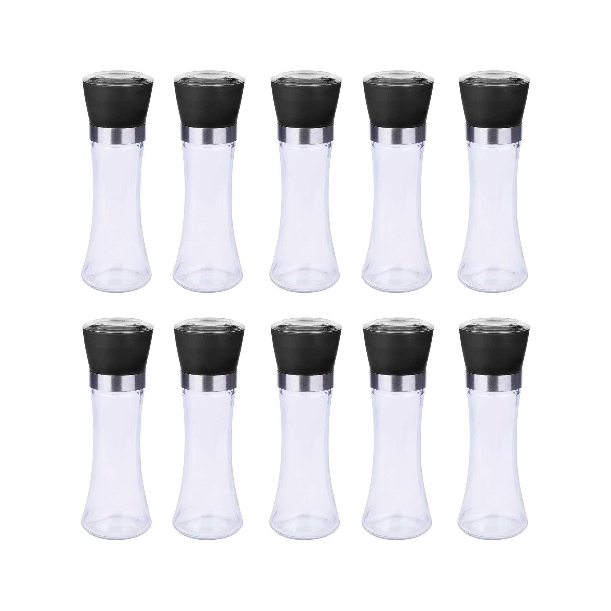 10x 180ml Glass Salt or Pepper Grinder 18cm - Adjustable Ceramic Core Tall Mill
