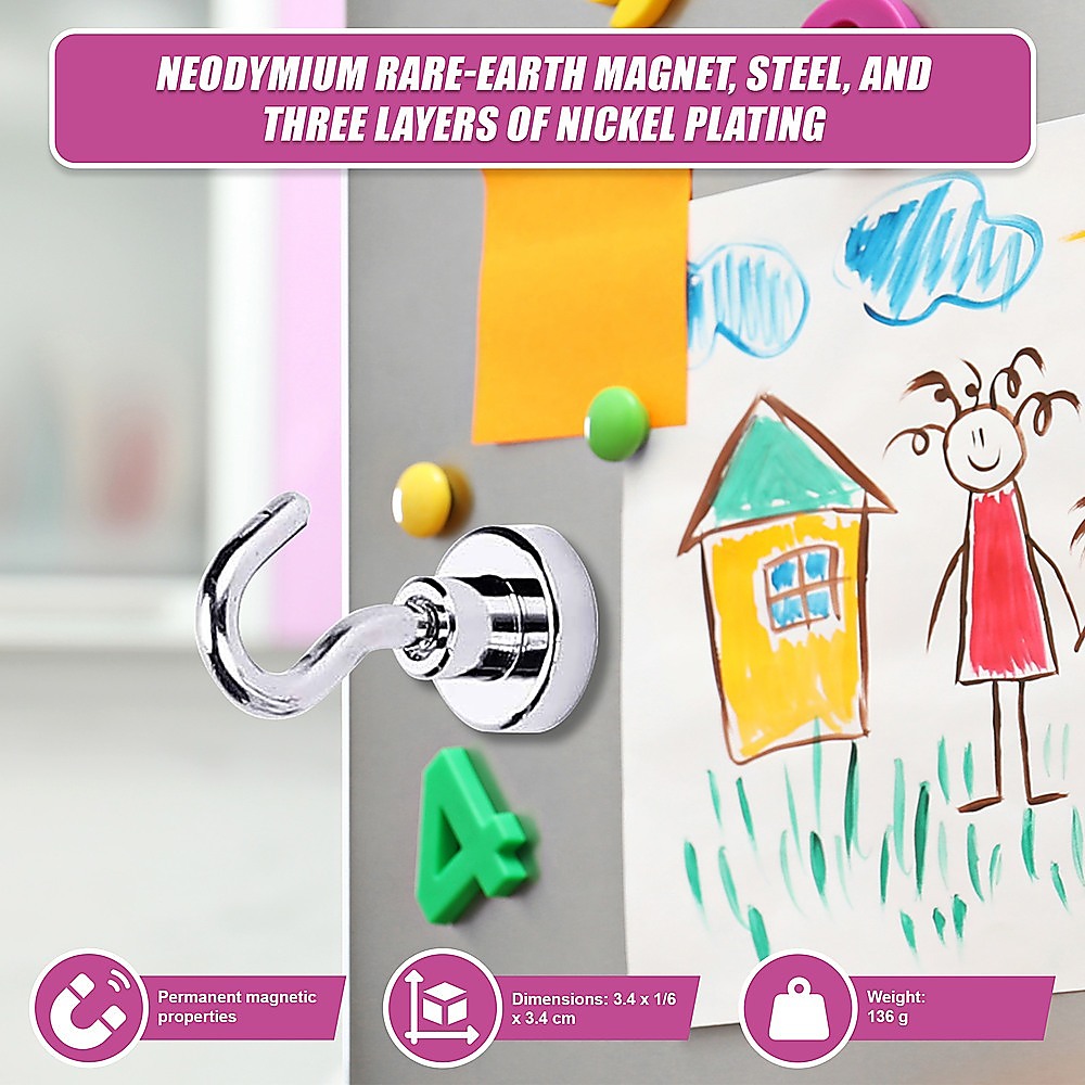 The premium neodymium magnet has three layers of corrosion-resistant nickel plating, making it a great choice for outdoor as well as indoor display. Relatively maintenance-free, these hooks will find plenty of uses in both the home and workplace.