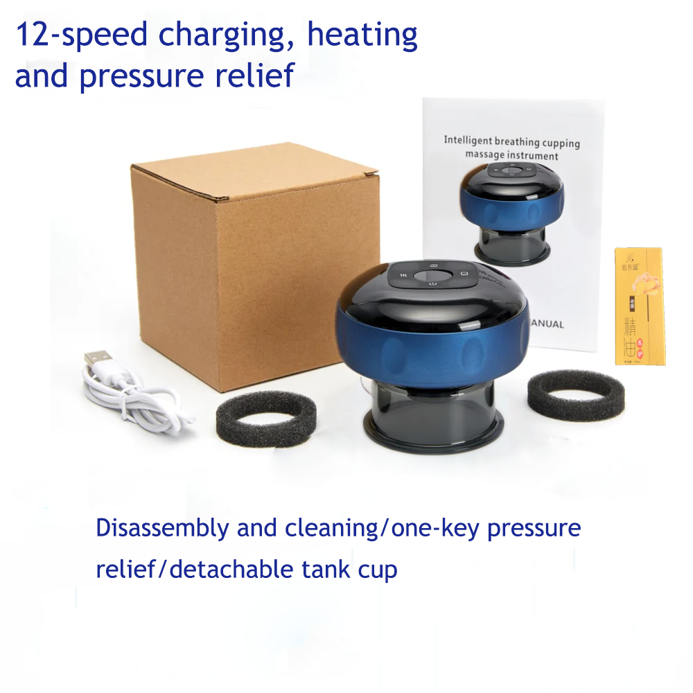 12 levels Electric Cupping Therapy Smart Scraping Massager Red Light Heating Body Slimming Blue