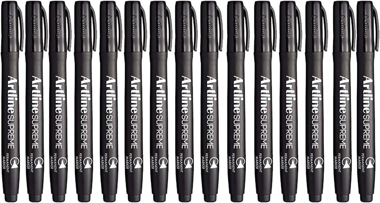 12x Artline Supreme Permanent Markers 0.4mm - Black Bulk Pack