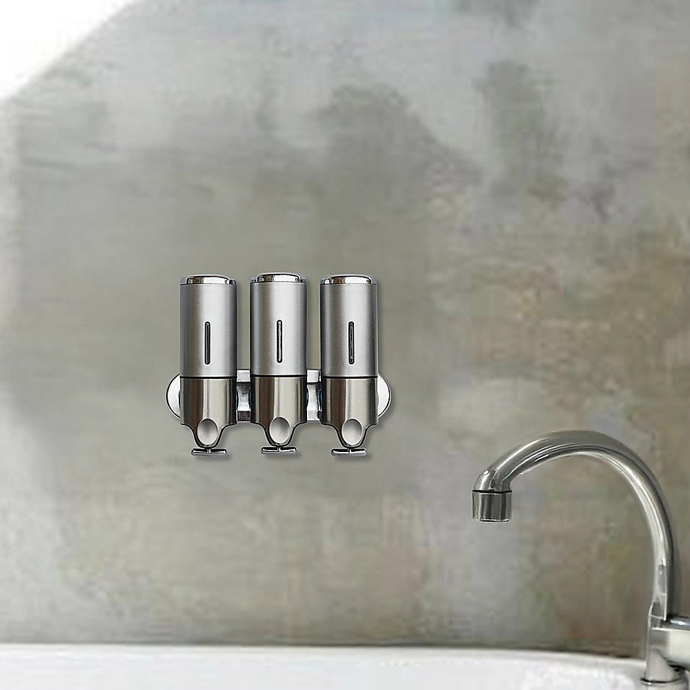 With its sleek, ergonomic design, this shower soap dispenser looks great in your shower. Install another one near your sink and keep your benchtops free from clutter. With three separate canisters attached to a single bar, the dispenser can store three different kinds of soaps, shampoos, lotions, or gels.