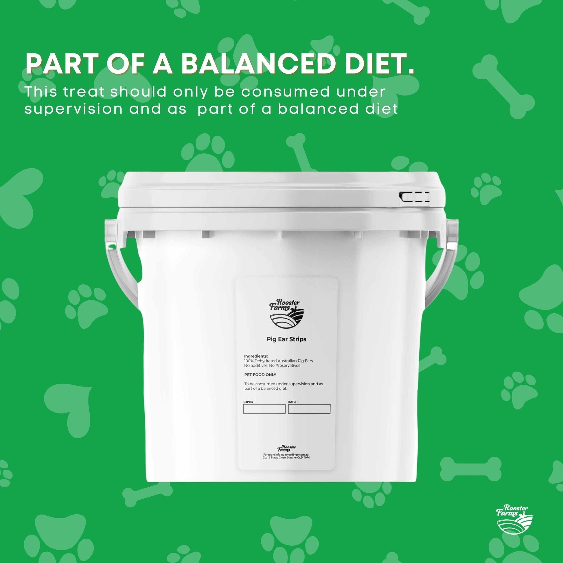 1Kg Dog Treat Pig Ear Strips Bucket - Dehydrated Australian Healthy Puppy Chew
