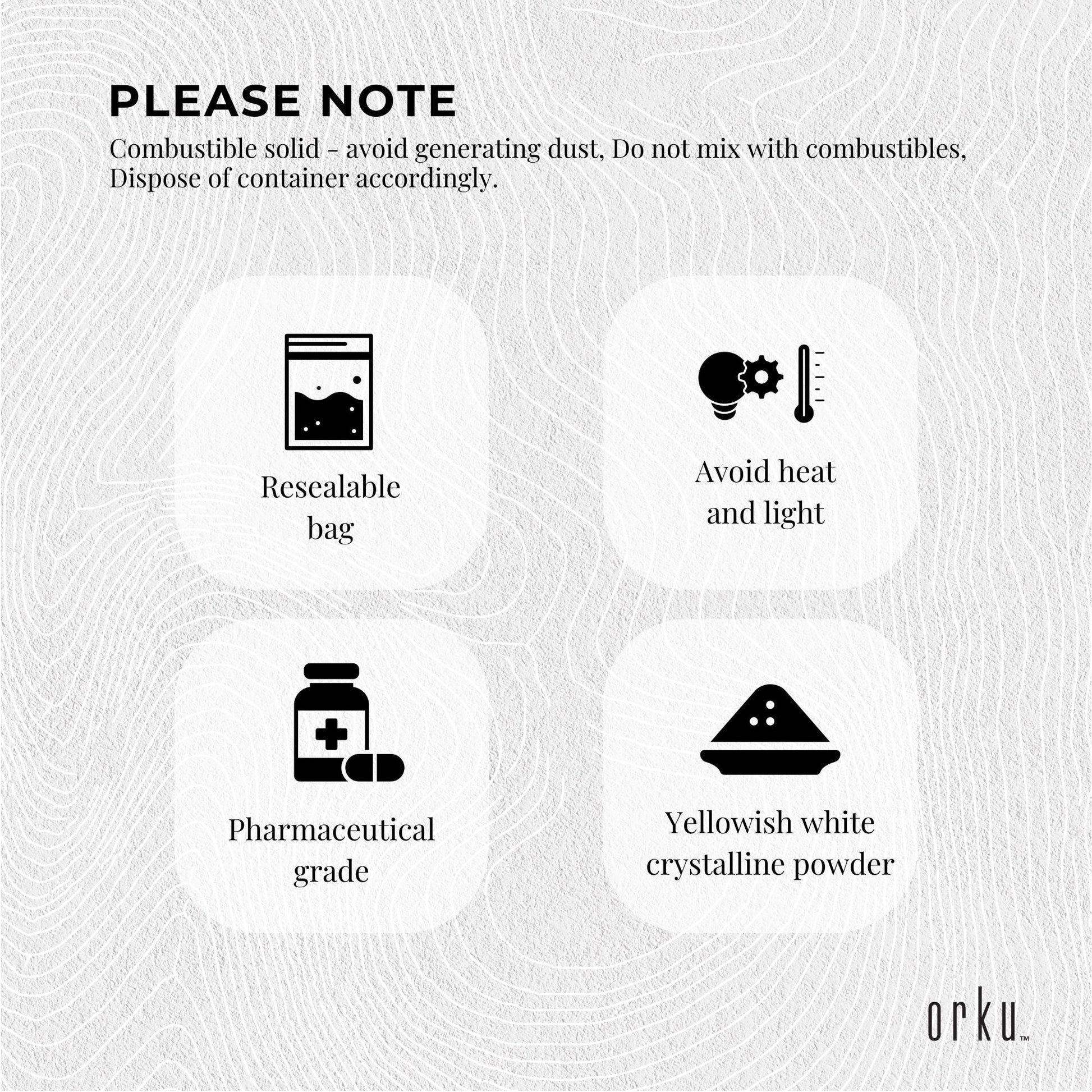 - Colour:?Yellowish white crystalline powder