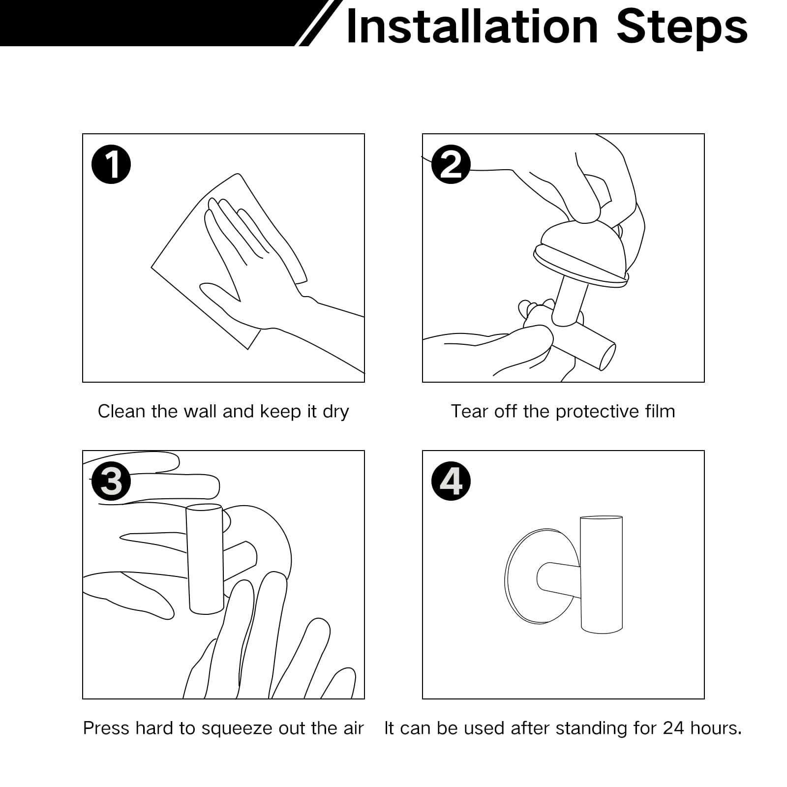 Please wipe the wall to keep clean and dry before installation, then peel off film of adhesive tabs and stick it on the wall, press hard for a few seconds. 24 hours later to use the adhesive hooks, it will work better
