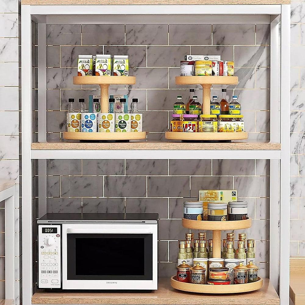2-Tier Bamboo Lazy Susan Turntable Organizer for Kitchen Counter Cabinet