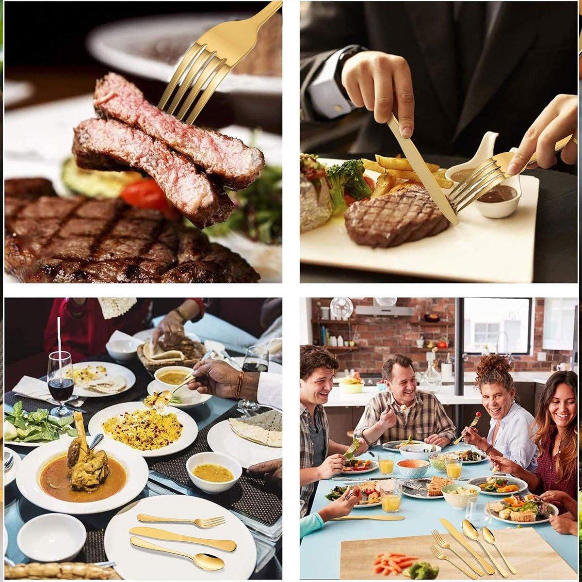 20/40pcs Stainless Steel Cutlery Set Knife Fork Spoon Western Hotel Tableware - Golden-20pcs
