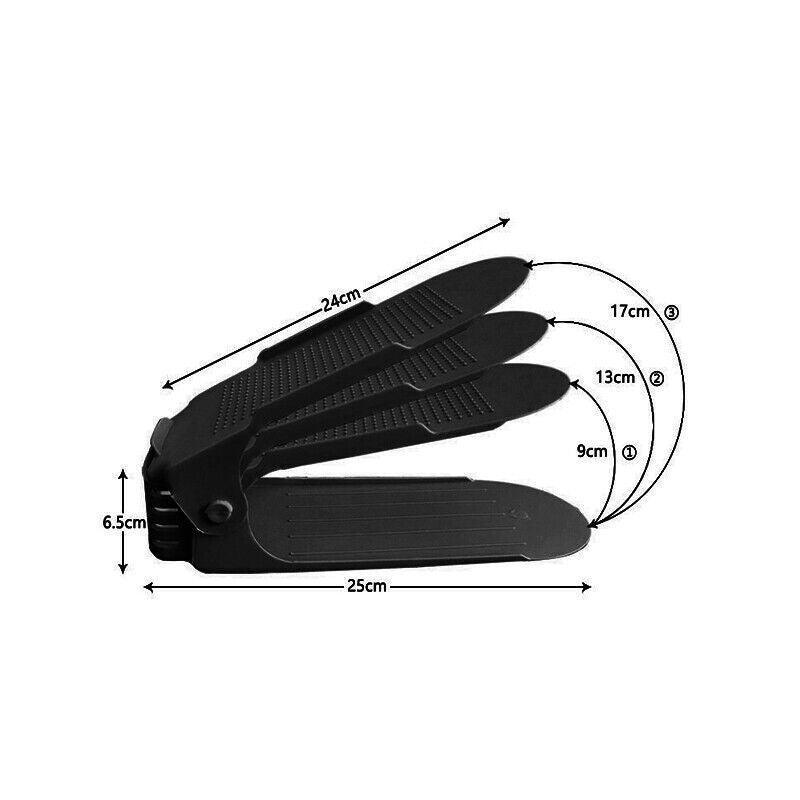 -COOL DESIGN-Great grip for your shoe sole due to the non-slip surface. The ADJUSTABLE SHOE ORGANIZERS are made from durable high quality ABS plastic which does not break easily under pressure. With a smart 3-level adjustment feature, these slots are perfect for all types of shoes, from flats, sneakers, sandals, and slippers to stilettos, high heels, or shoes for little ones.