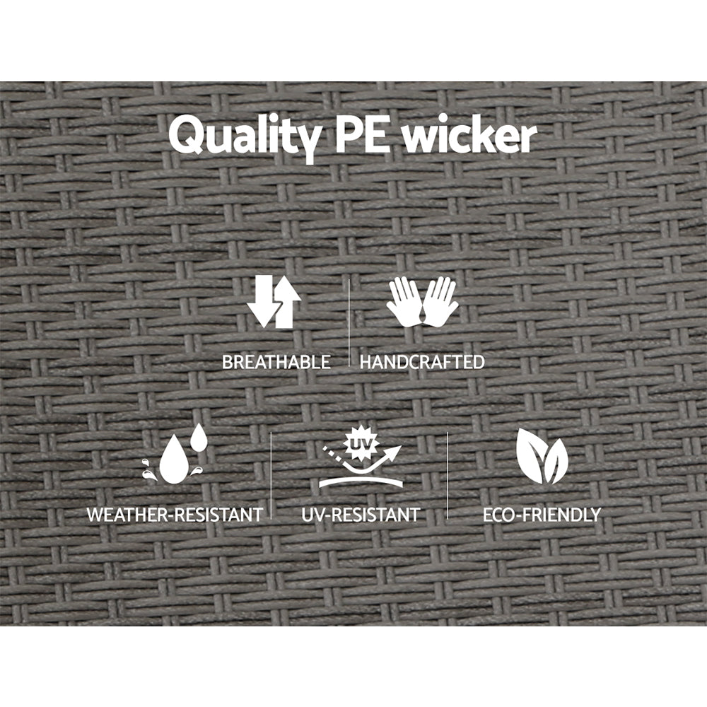 2PC Recliner Chairs Sun lounge Wicker Lounger Outdoor Furniture Adjustable Grey