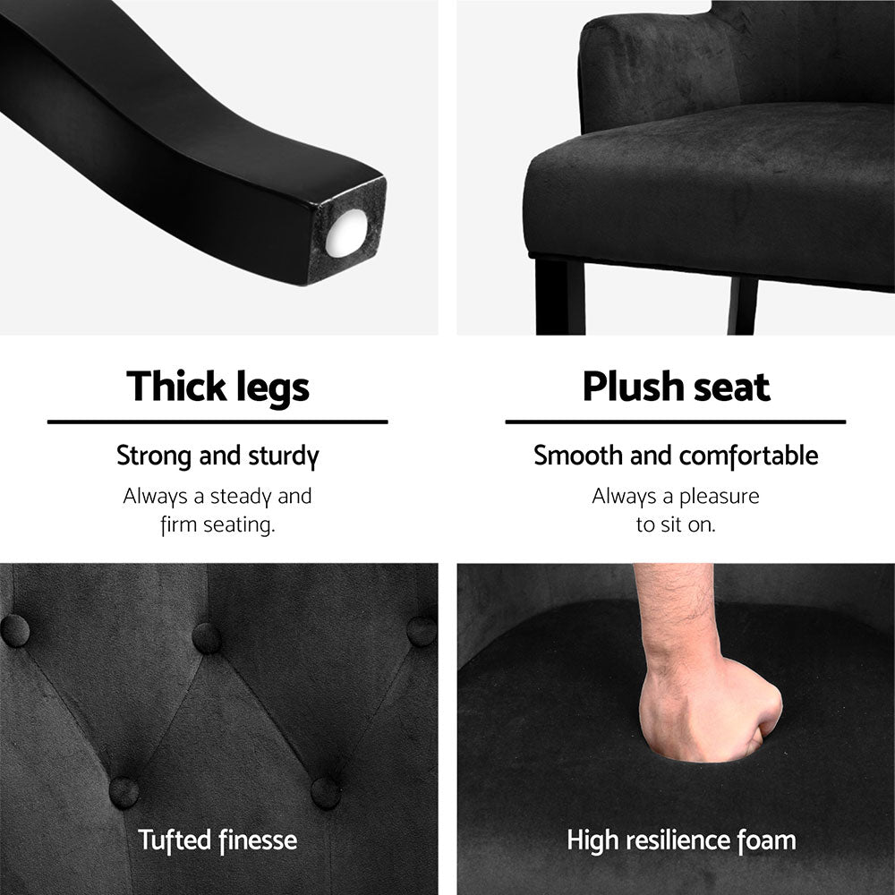 2x Dining Chairs Velvet French Provincial Armchair Black