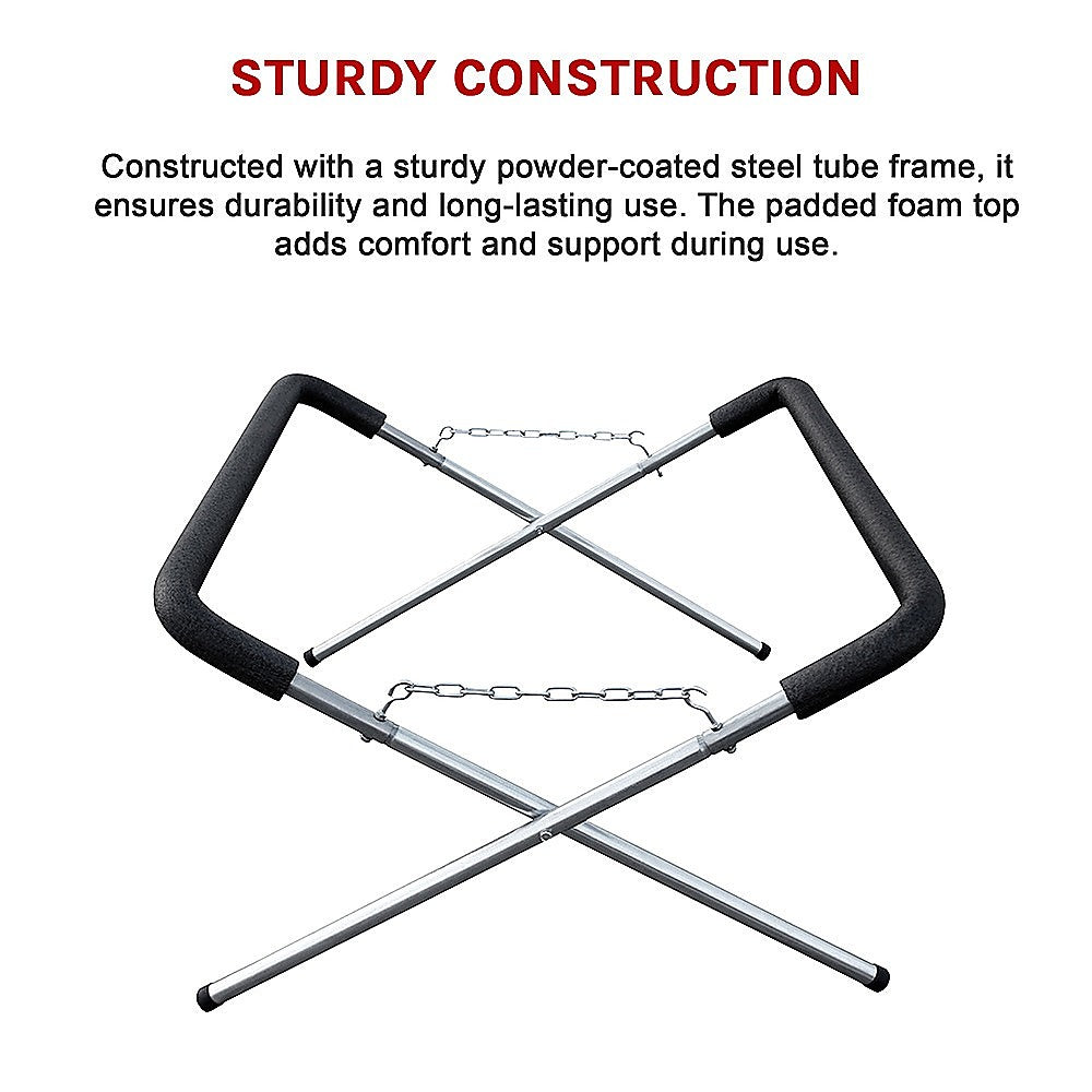 With a maximum capacity of 225kg, the weight loading capacity is determined by the adjustable height mechanism. Constructed with a sturdy powder-coated steel tube frame, it ensures durability and long-lasting use. The padded foam top adds comfort and support during use.