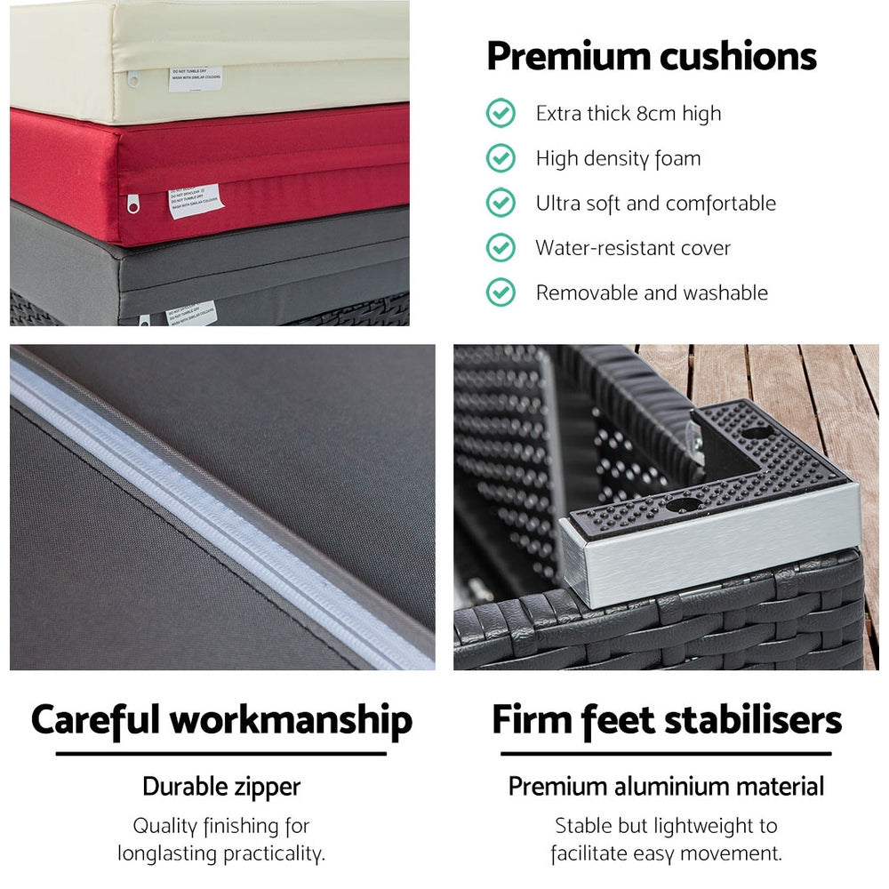 3PC Sun Lounge Wicker Lounger Outdoor Furniture Day Bed Rattan Garden