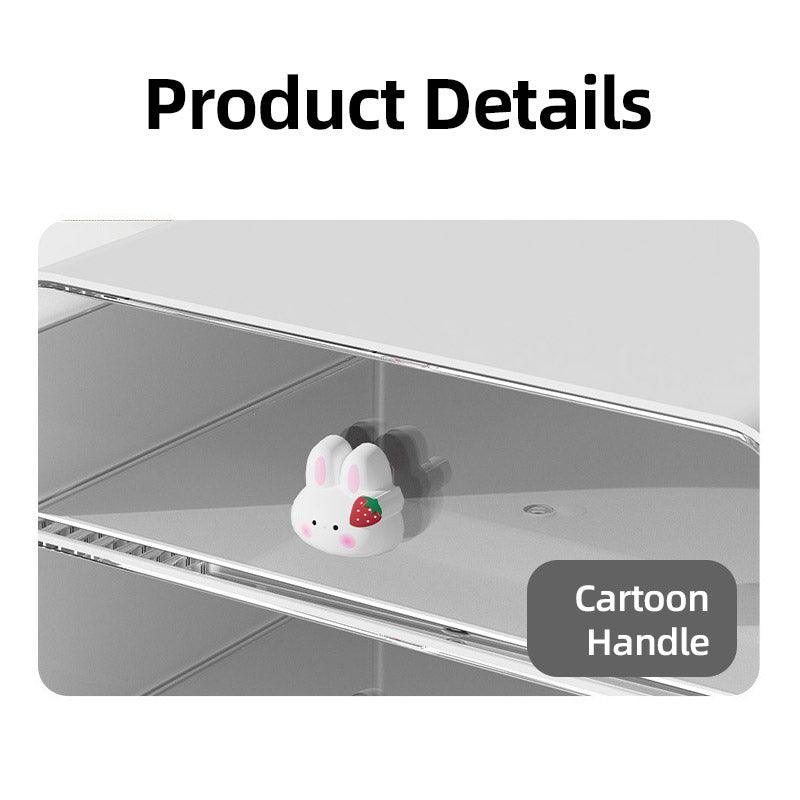 This 3-tier desktop organiser drawer shelf is a practical and stylish addition to your workspace or home. With its compact size and transparent drawers, it is perfect for keeping your desk neat and tidy. The charming rabbit-shaped handles add a touch of cuteness while ensuring ease of use. Ideal for storing small items such as stationery, makeup, or craft supplies, this organiser helps maximise space while maintaining easy access to your essentials.