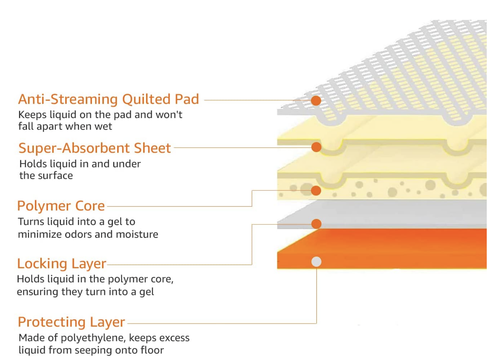 - Leak-Proof Protection: The high-quality PE film at the bottom of the pad prevents leakage, protecting your floors from moisture and stains.