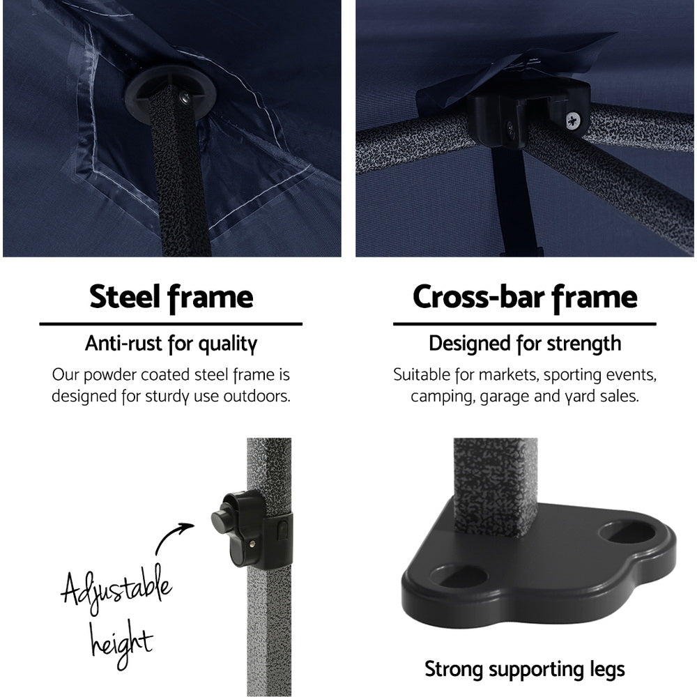 Gazebo Pop Up Marquee 3x3 Folding Tent Gazebos Camping 500D Oxford Navy