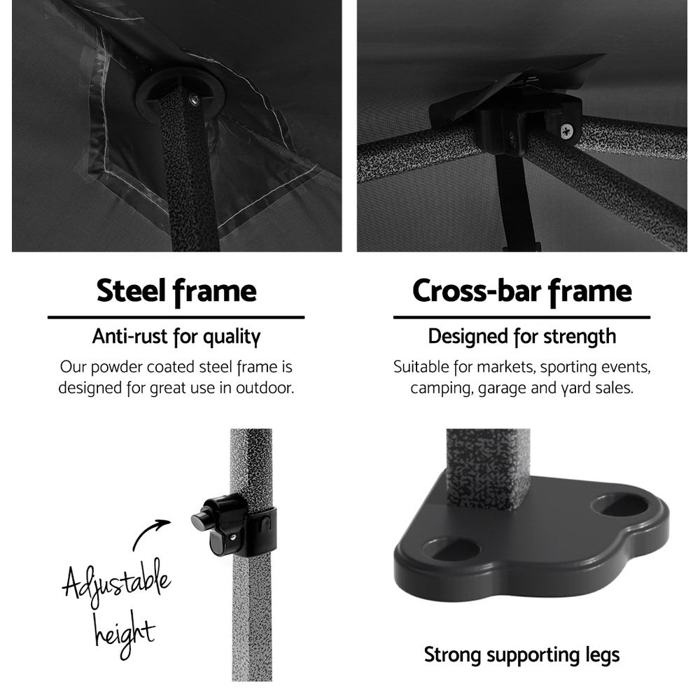 The INSTAHUT gazebo has 3 adjustable height levels to suit different height needs. It is ideal for markets, sporting events, camping, garage and yard sales, school events, trade shows and many more.