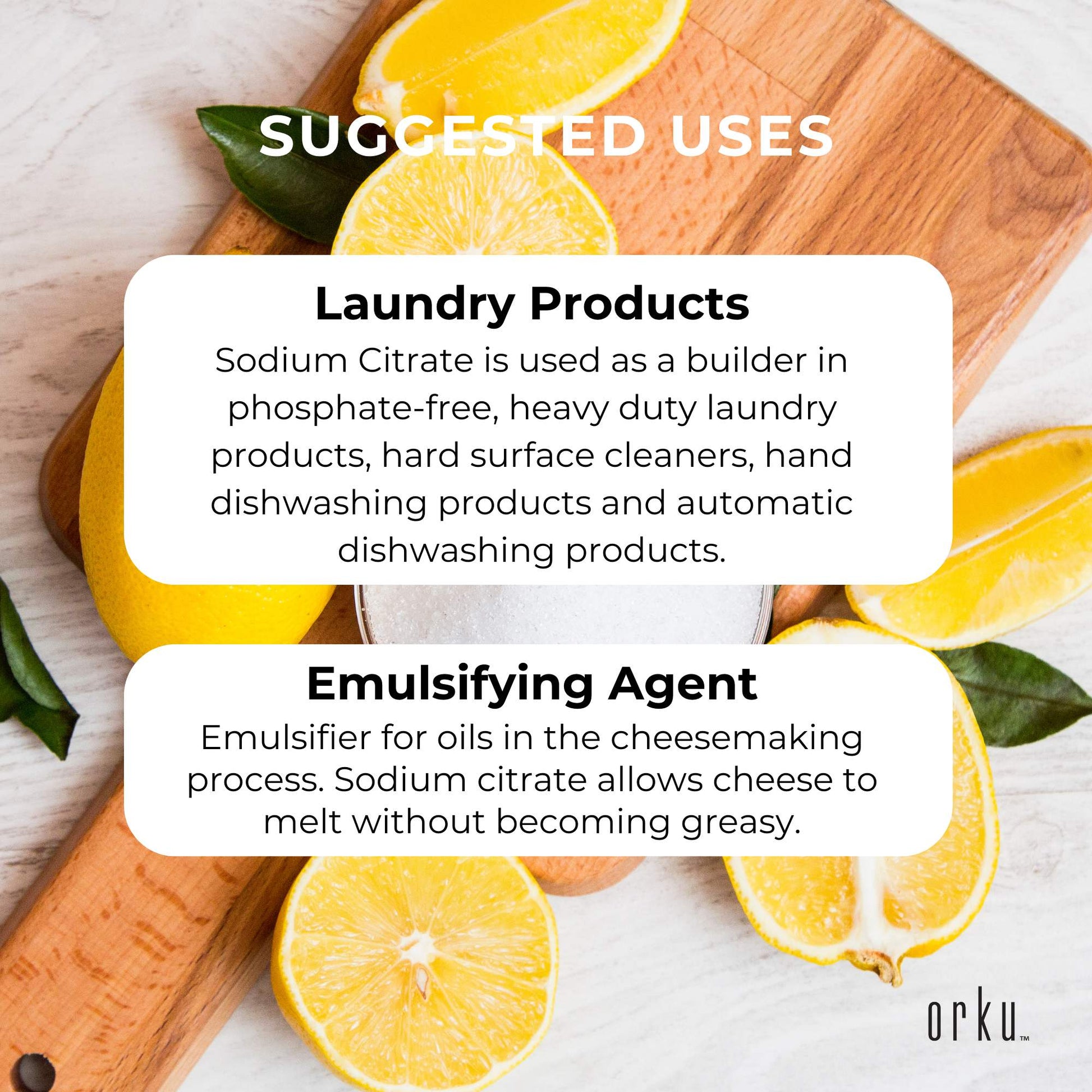 Sodium Citrate is used as a builder in phosphate-free, heavy duty laundry products, hard surface cleaners, hand dishwashing products and automatic dishwashing products.?