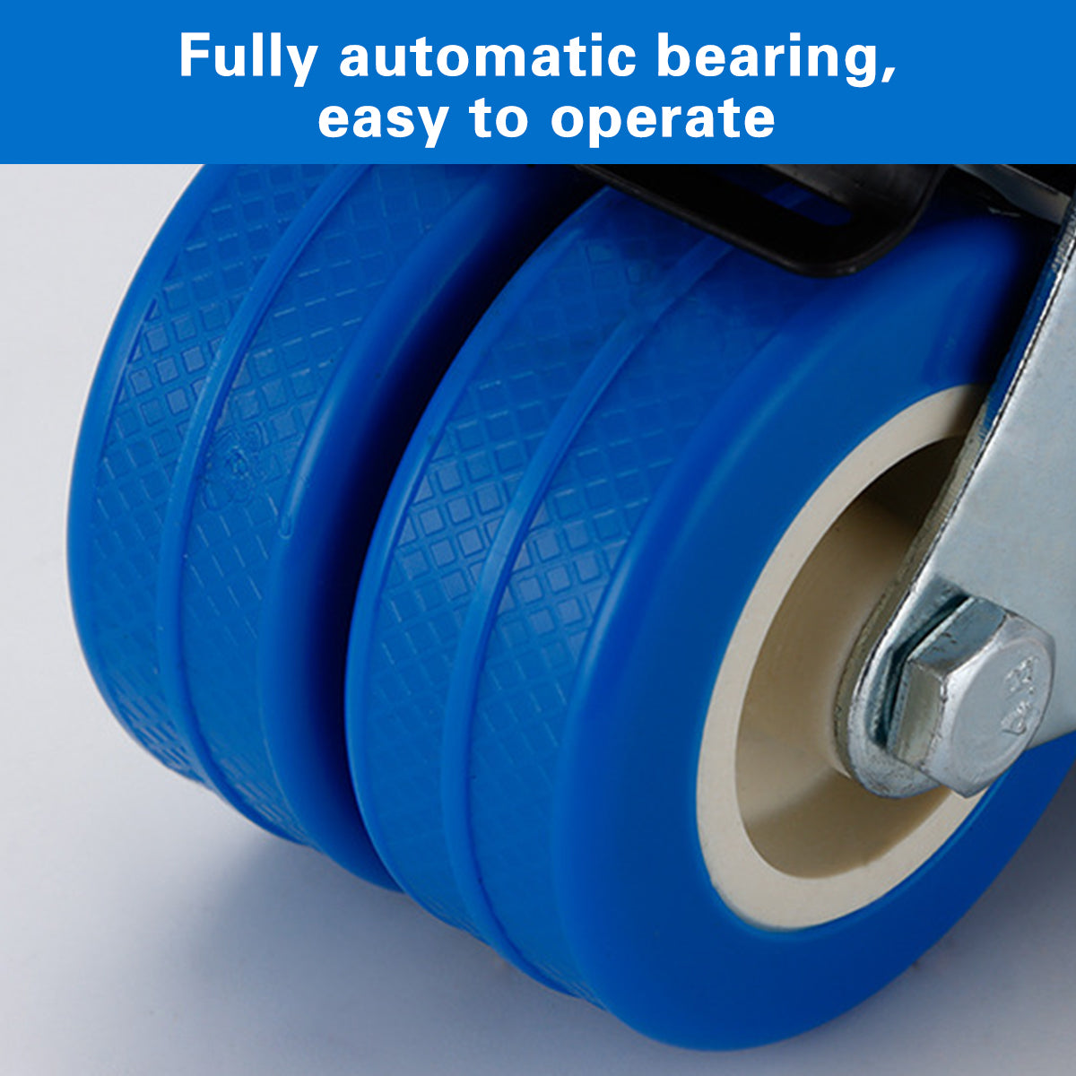 This 4-piece caster set includes 2 standard swivel and 2 double-brake locking casters, ideal for enhancing mobility in homes, workshops, and offices. Designed with high-performance flat-bottom brackets, they are easy to mount, delivering stable movement and secure positioning on various surfaces. Dual-wheel PVC construction offers excellent load-bearing and smooth rolling, supporting up to 50KG.