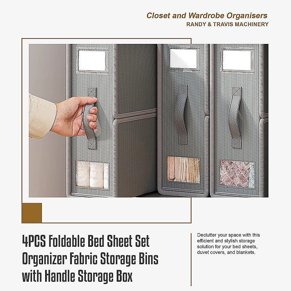 4PCS Foldable Bed Sheet Set Organizer Fabric Storage Bins with Handle Storage Box