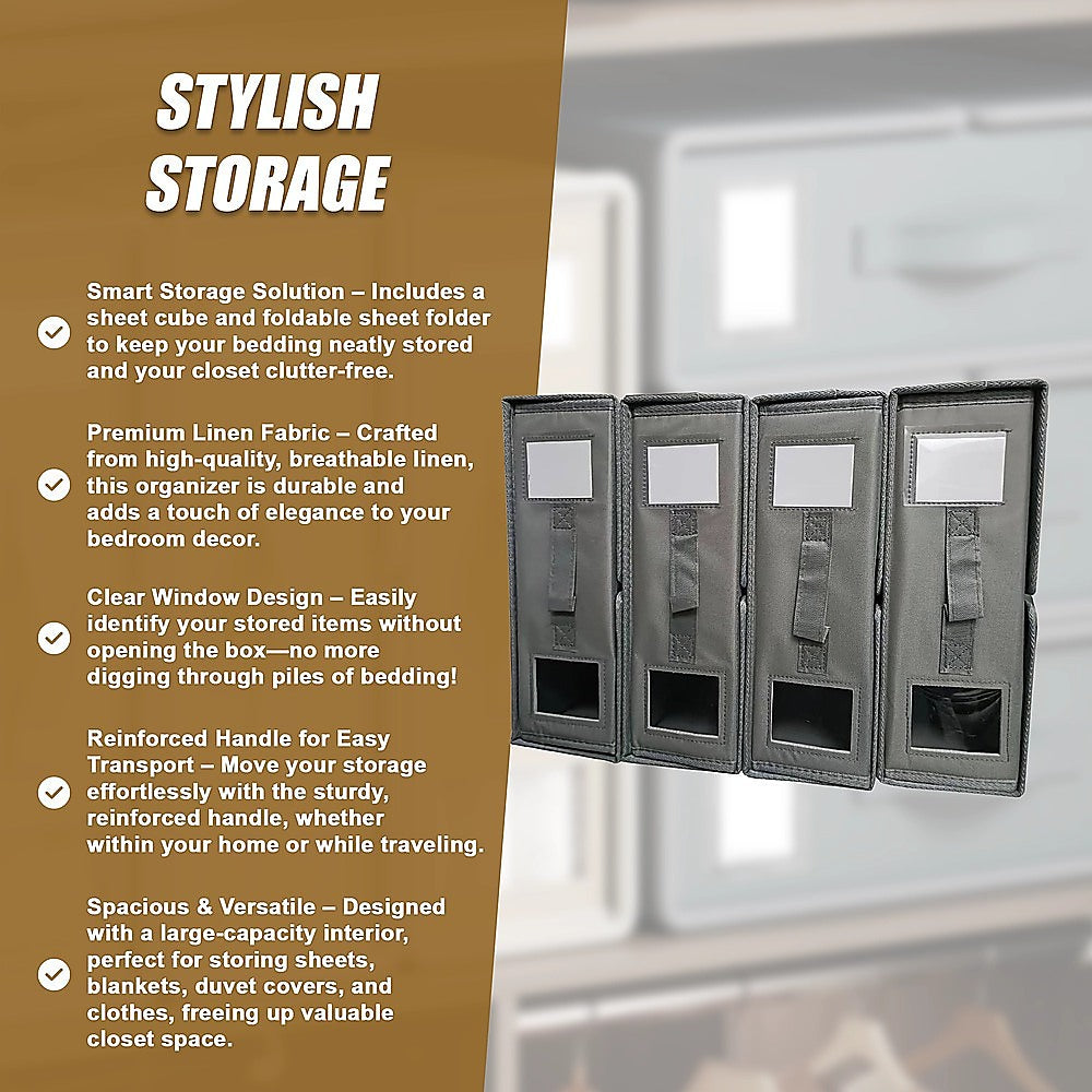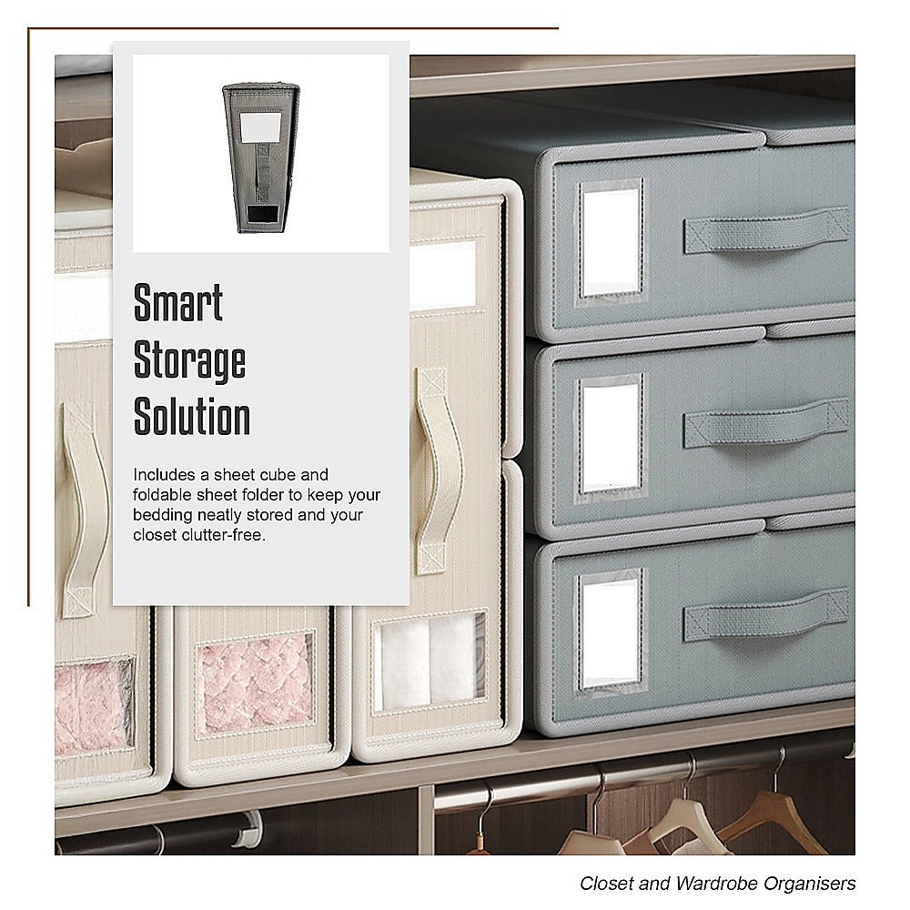 - Smart Storage Solution Includes a sheet cube and foldable sheet folder to keep your bedding neatly stored and your closet clutter-free.