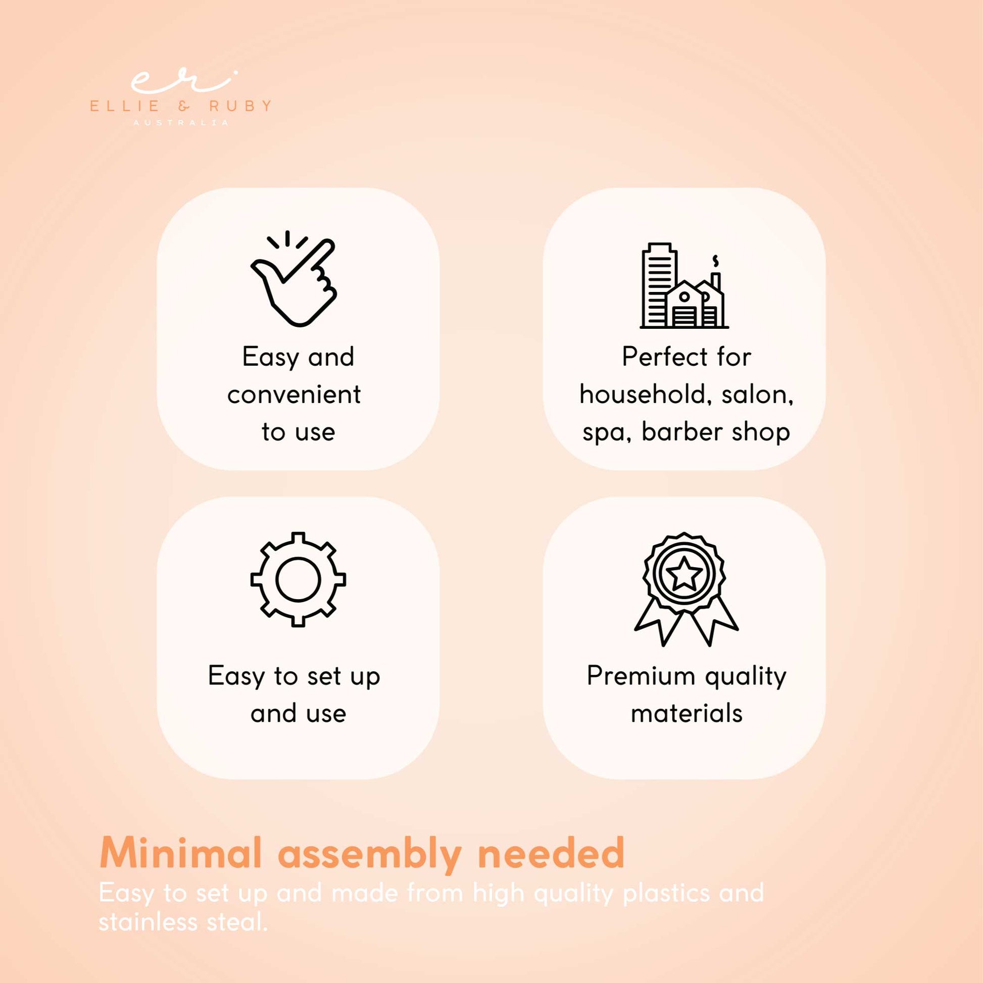 Containing 5 drawers with plenty of storage space, this mobile trolley is an important addition to any salon, barber, tattoo studio or groomer. Set on 4 wheels for ease of movement and including a large segmented area with enough holders for all of your various accessories and equipment. A super versatile and great use of space for storage.