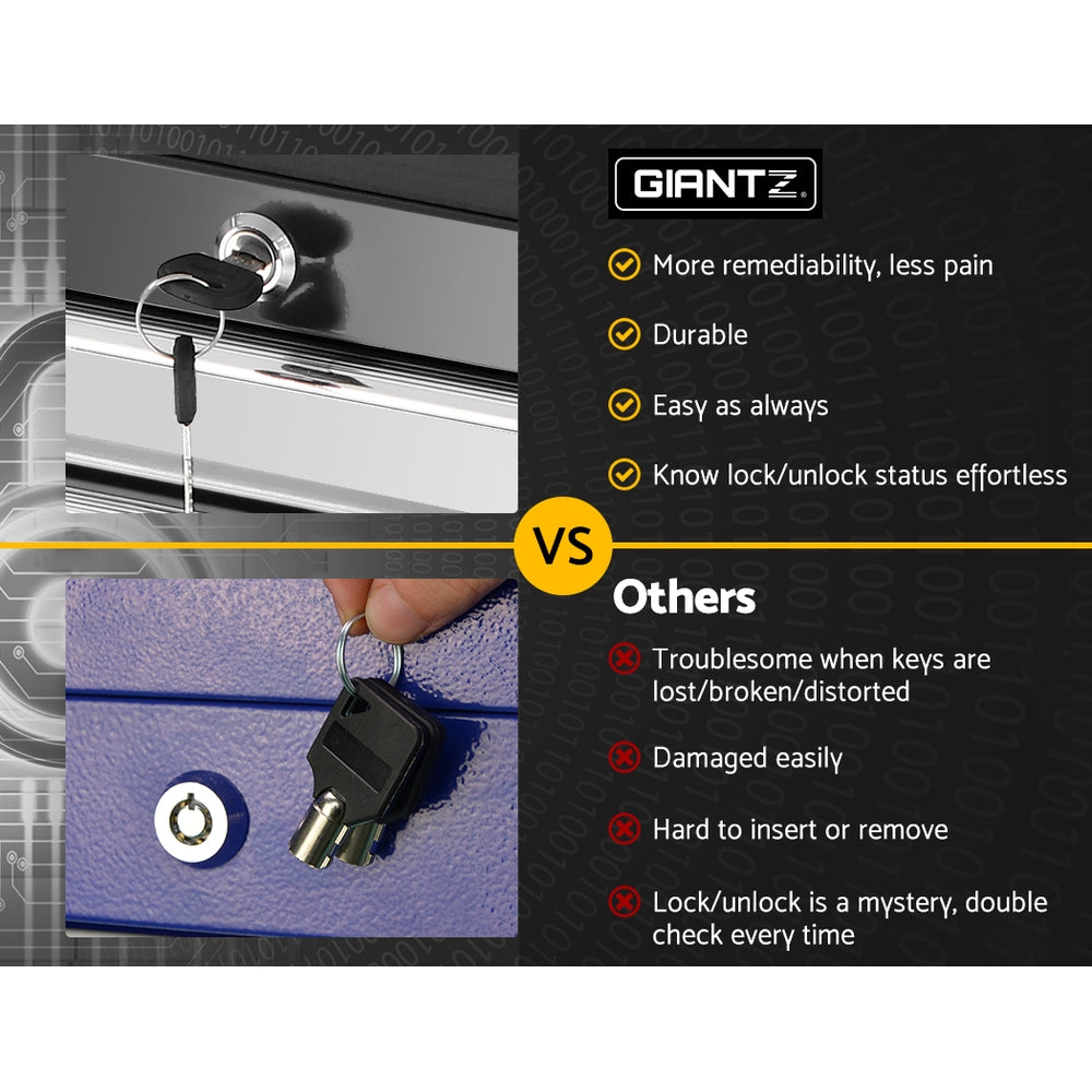 This robust, multi-drawer Giantz Tool Trolley is an essential for any workshop. Crafted from durable steel, it features smooth ball-bearing slides for easy access and a secure lock system for safety. Its spacious design includes varying drawer sizes to accommodate tools of all shapes, complete with non-slip liners. The chest is also mounted on omni-directional castors with locakble front wheels, ensuring a smooth maneuverability and stable positioning. Sleek and functional, it's perfect for organizing and protecting your valuable tools.