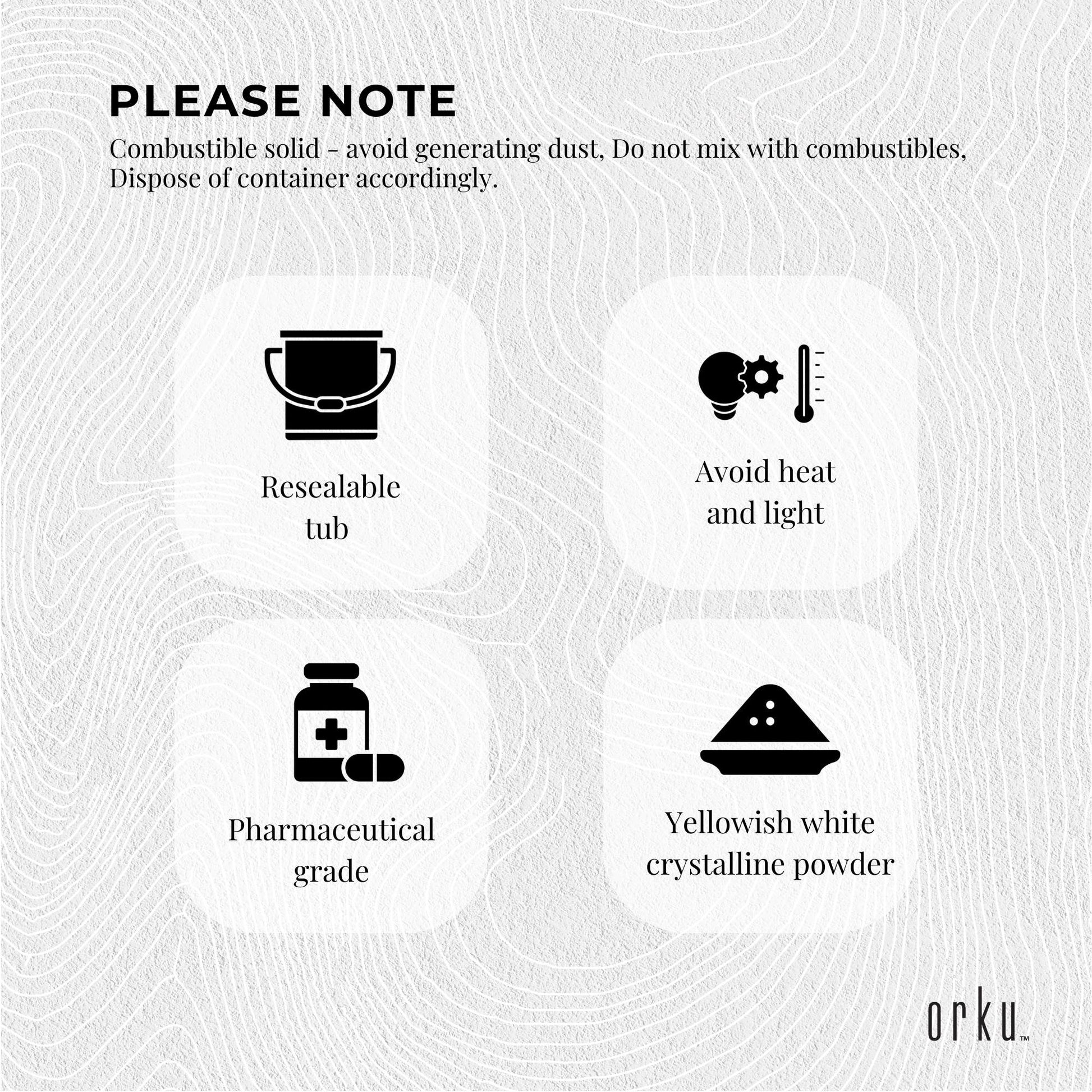 - Colour:?Yellowish white crystalline powder
