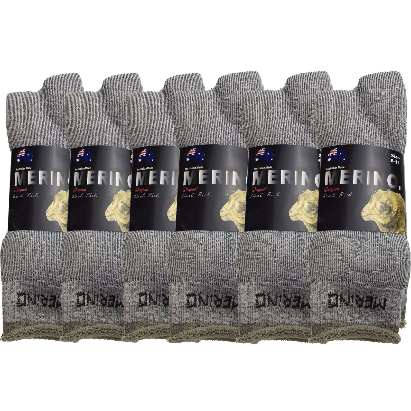 6 Pairs MERINO WOOL SOCKS Mens Heavy Duty Premium Thick Work Socks Cushion BULK - Grey - 11-14