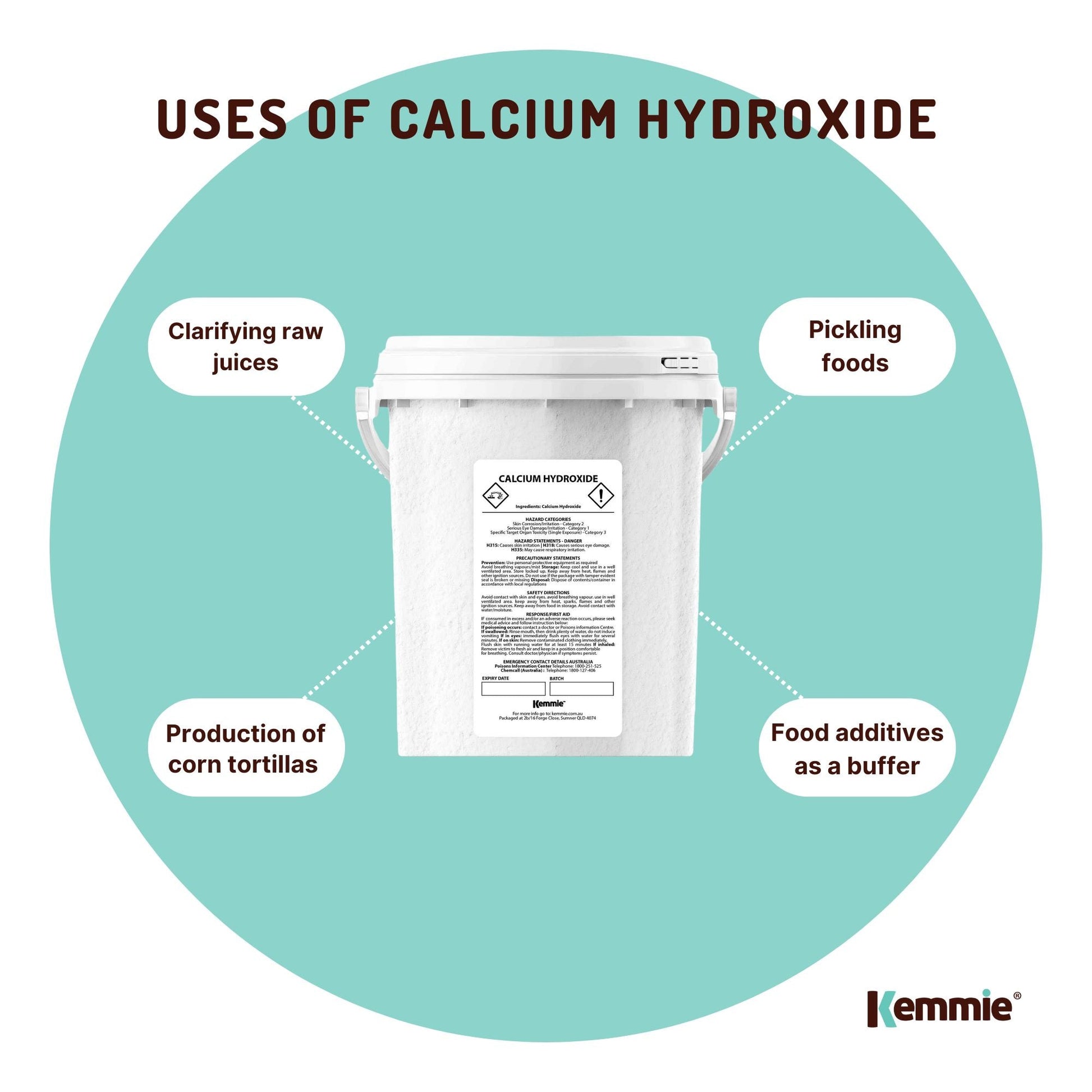 Please Note: Please wear protective gear when handling as calcium hydroxide may?cause skin corrosion/irritation, serious eye damage/irritation, respiratory irritation.