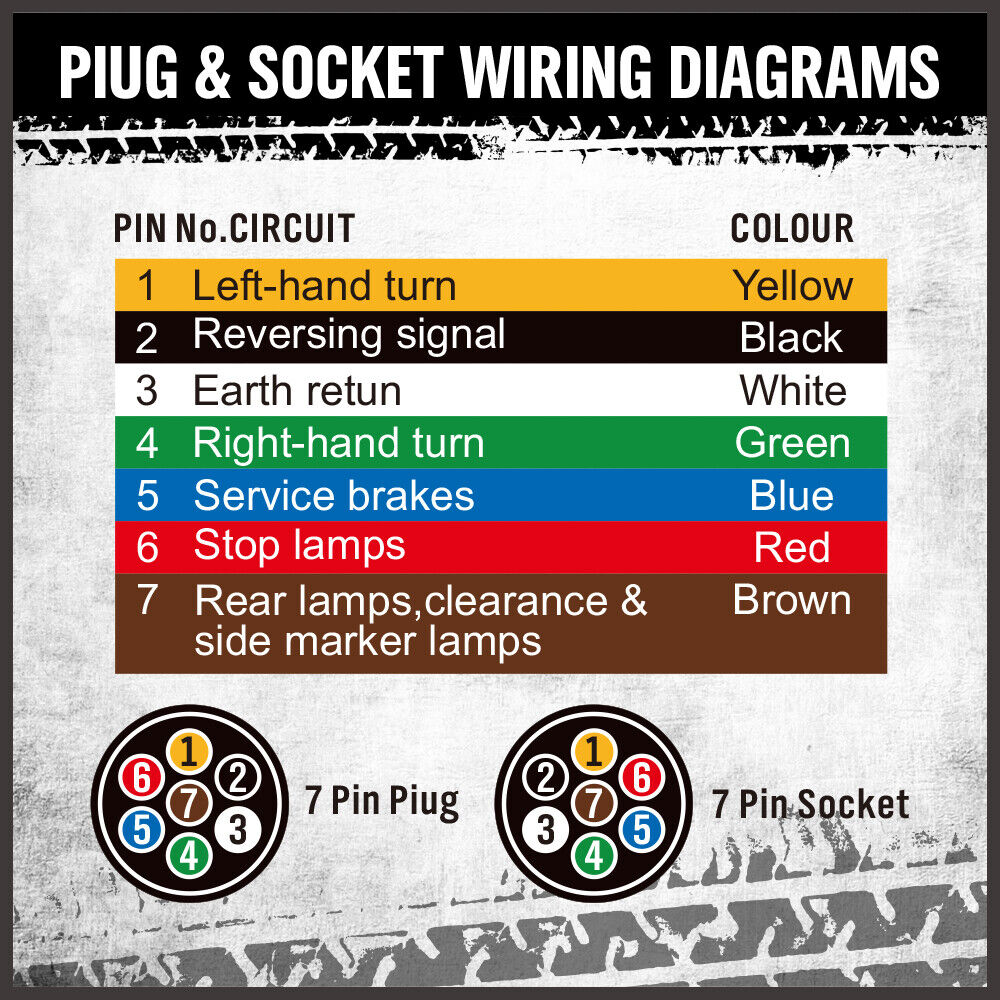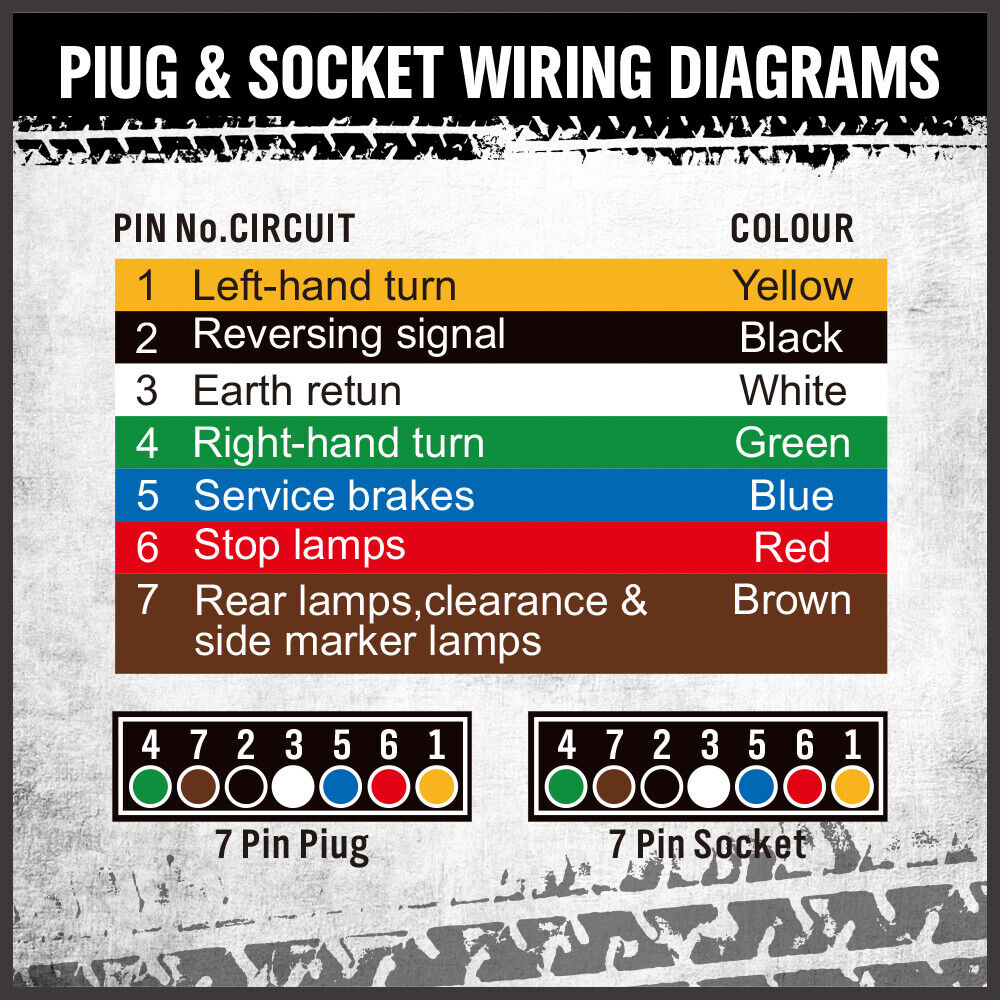 Wire Colours:Black (Earth), Yellow (Indicator), Red (Stop), White(Reverse), Blue (Tail)