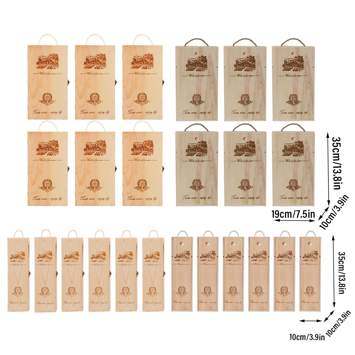 6pcs Red Wine Wooden Gift Box Packaging Storage Box for Wine Bottle Gifts - Single clamshell