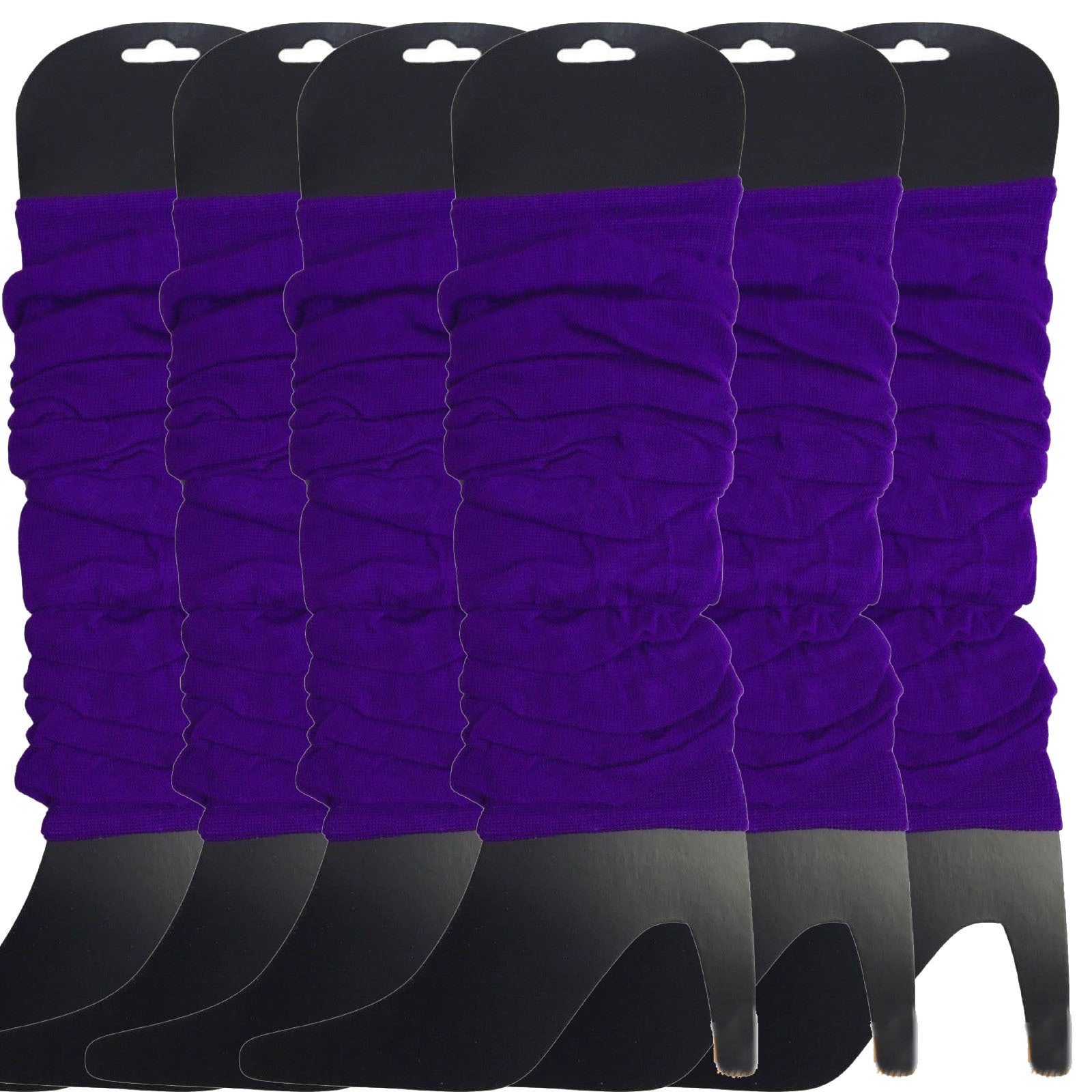 6x LEG WARMERS Knitted Womens Neon Party Knit Ankle Fluro Dance Costume 80s BULK - Purple
