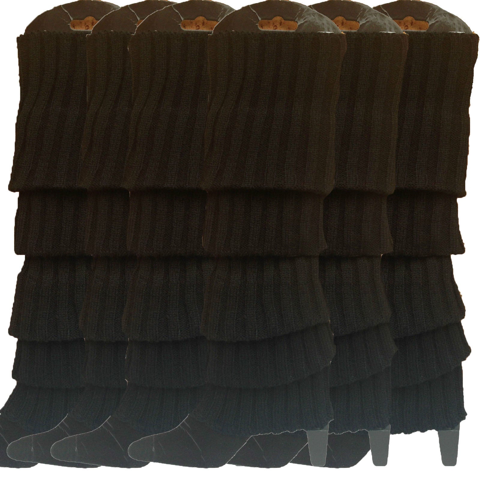 6x Womens Leg Warmers Disco Winter Knit Dance Party Crochet Legging Socks Costume - Black