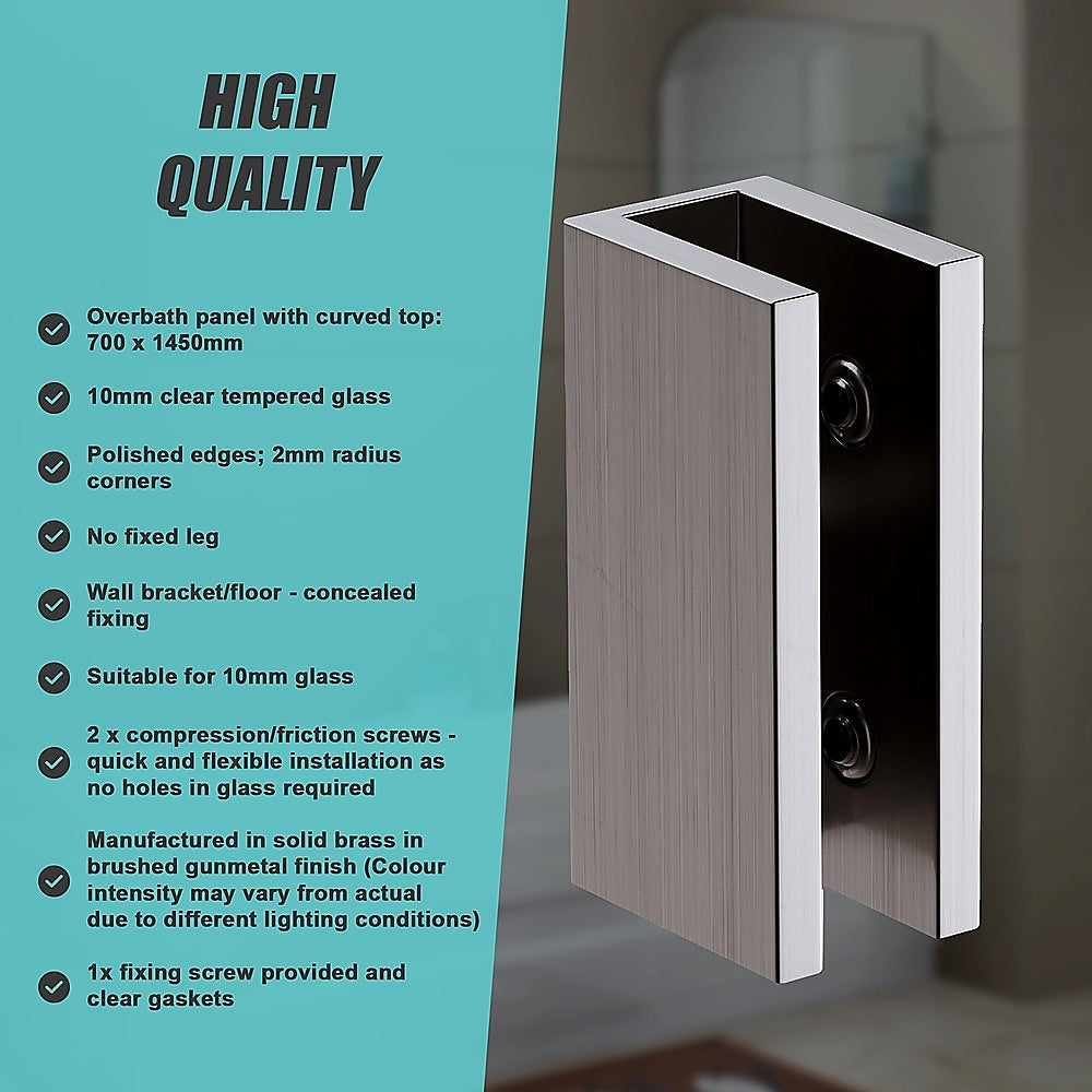 70cm Frameless Glass Bath Screen with Brackets - Gunmetal