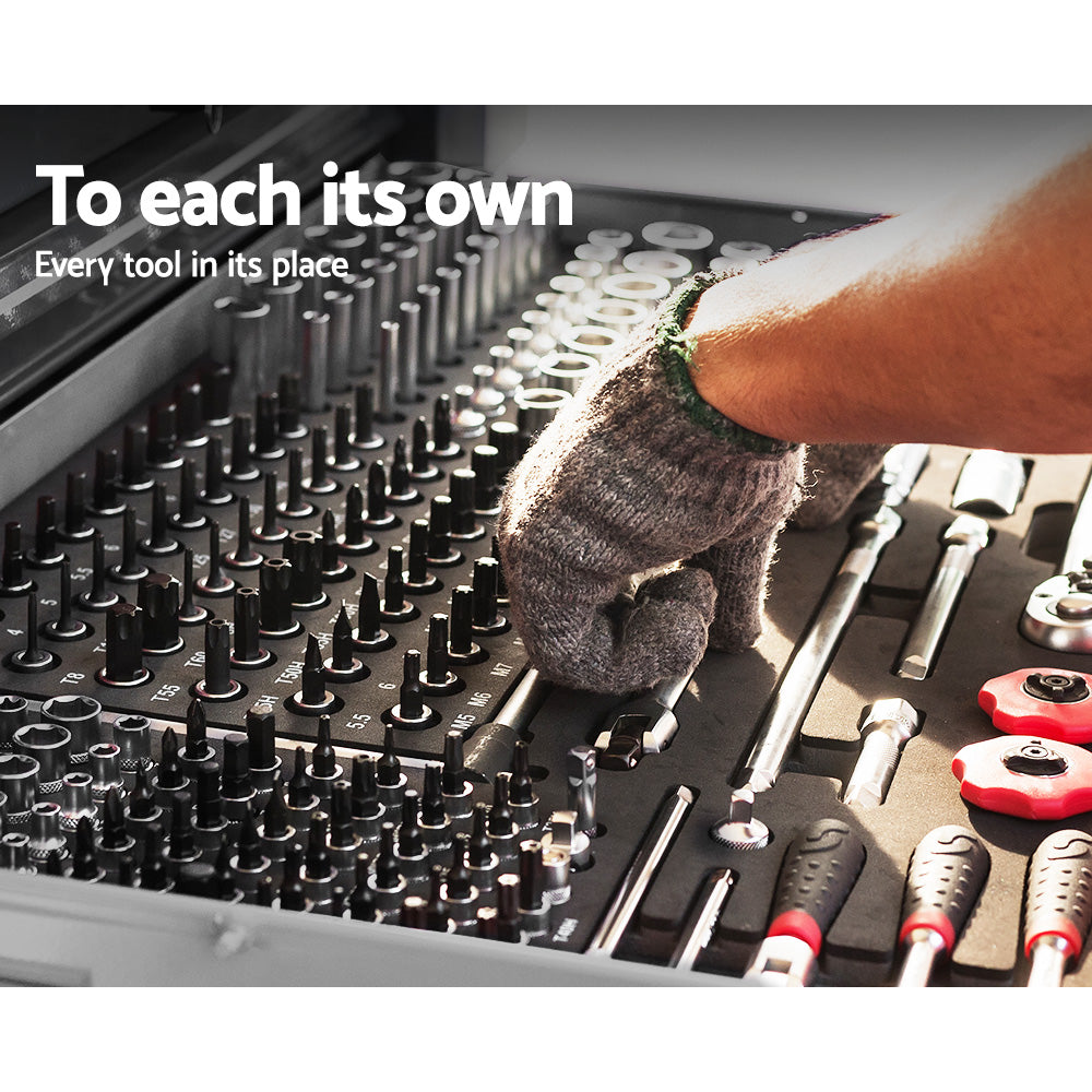 This robust, multi-drawer Giantz Tool Chest is an essential for any workshop. Crafted from durable steel, it features smooth ball-bearing slides for easy access and a secure lock system for safety. Its spacious design includes varying drawer sizes to accommodate tools of all shapes, complete with non-slip liners. Sleek and functional, it's perfect for organizing and protecting your valuable tools.