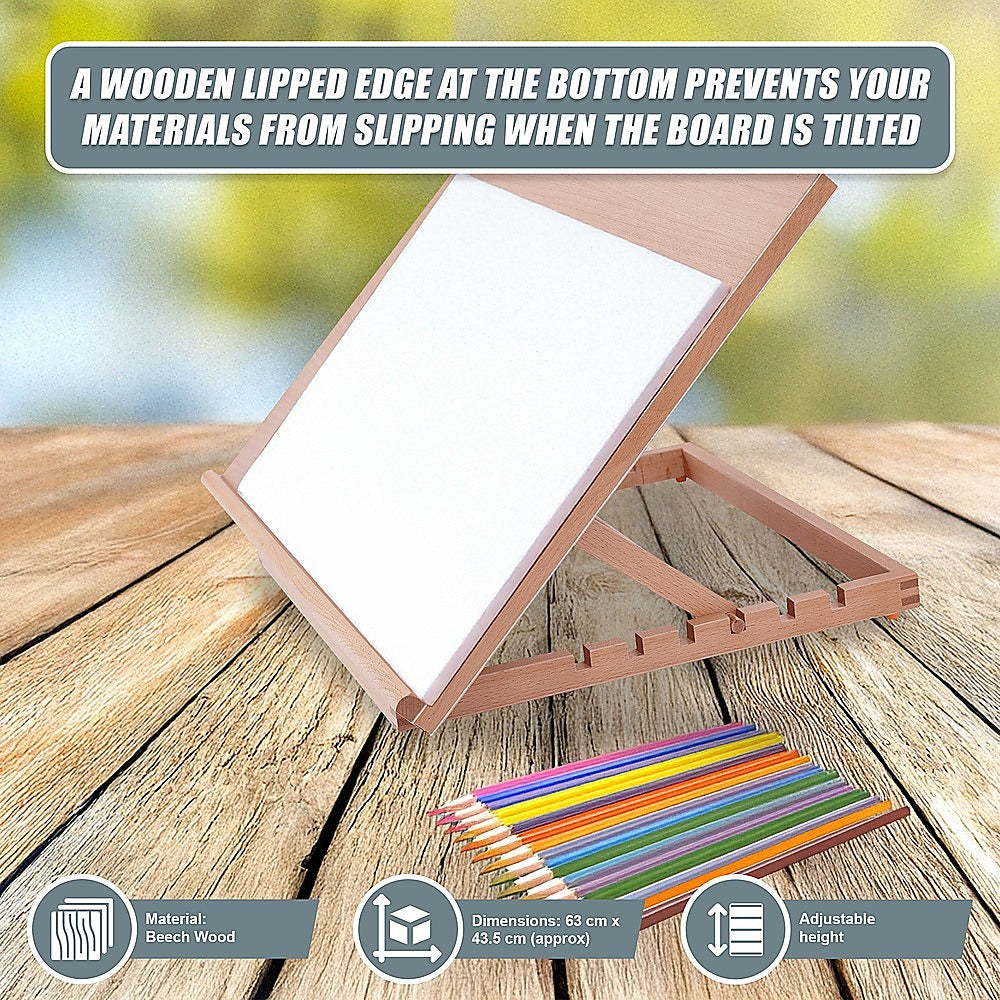 A2 Art & Craft Easel Table Wooden Drawing Board Artist Adjustable WorkStation