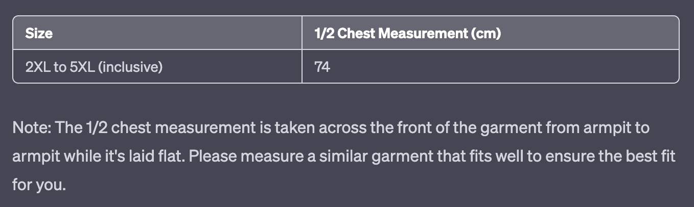 Fits adults sizes 2XL --> 5XLinclusive, approximately.