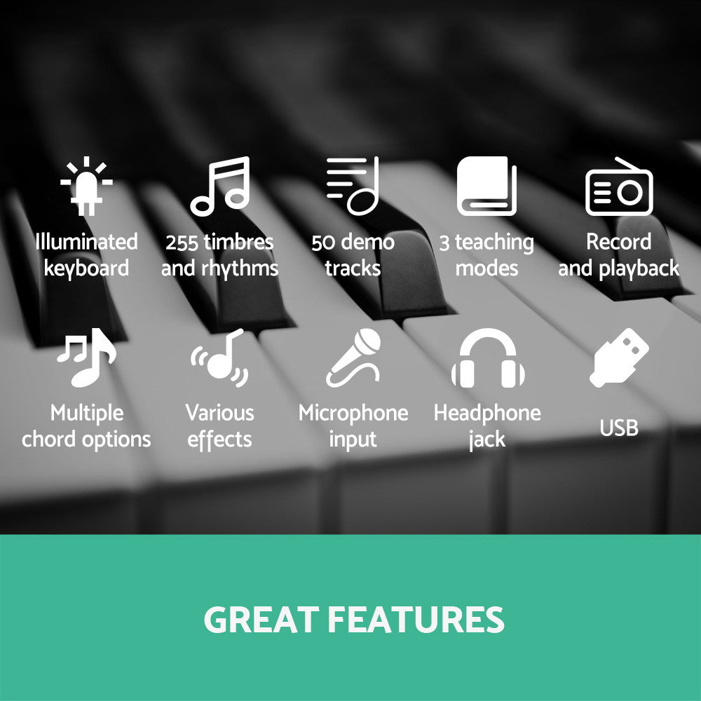 Alpha 61 Keys Electronic Piano Keyboard Digital Electric w/ Stand Lighted Black