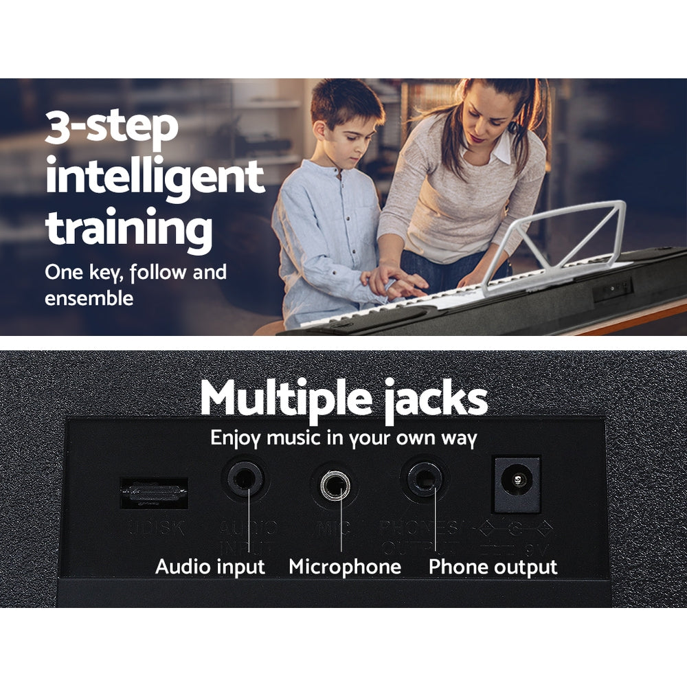 With 61 keys, the Alpha Portable Keyboard EK-60 enables you to discover a whole new world of music with exceptional built-in features: 255 rhythms, 255 timbres, tempo control, volume control, 24 demo songs, multiple chord options, various effects controls, 61 keyboard percussion select and many more. You can programme the keyboard to assist with your compositions and the intelligent one-key and guide function helps you to learn to play better with minimum fuss. Not least, with various inputs for microphone and headphones as well as speaker outputs, the keyboard also allows you to play and sing for all to hear or for silent practice. An adjustable keyboard stand and music sheet holder are also included as standard.