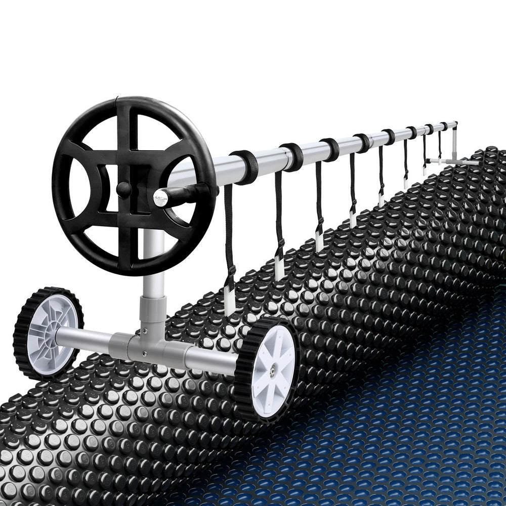 Keep your pool clean from debris and warm from the power of the sun with Aquabuddy's Aluminium Pool Roller and 6.5m x3m Pool Cover. Made of sturdy aluminium construction with full adjustability, this pool roller is suitable for pool cover with a width between 2.1m-4.05m. It is equipped with premium anodized aluminium alloy telescopic poles, plastic wheels for maximum portability, and a low friction crank wheel to easily roll up your pool cover and get right in the water. The solar pool cover is made from premium low-density 600 micron polyethylene, which makes it extremely durable. The blue top and black underside allow the sun's rays to penetrate the pool, increasing the temperature and significantly reducing water evaporation. Finally, the cover keeps the pool water clean all year round, reducing the time spent maintaining the water, pumps and filters. Get the best of natural resources and save money on chemicals and water; get yourself an Aquabuddy Pool Roller and Cover set today!