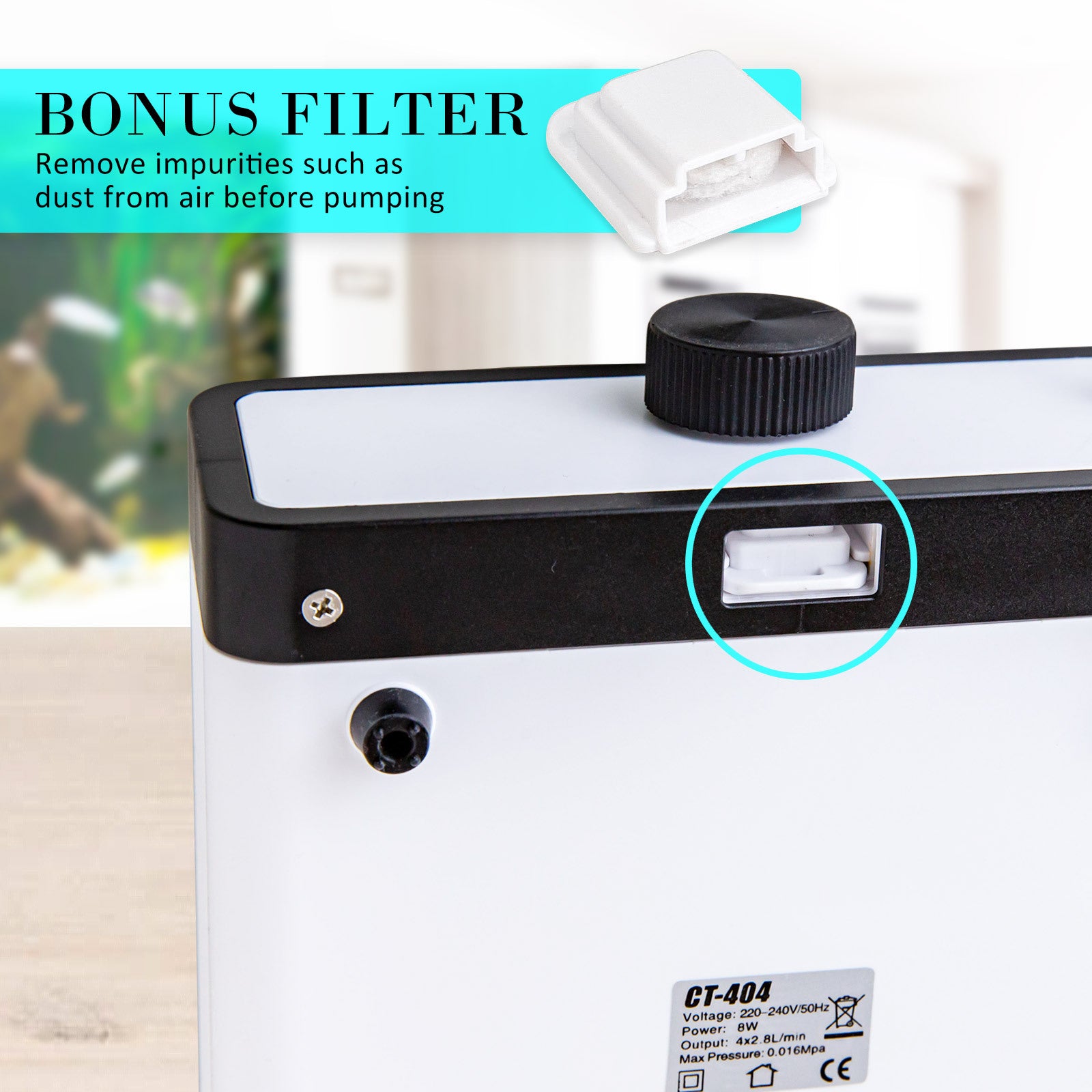 - 4 outlets in order to spread the oxygen evenly in your tank