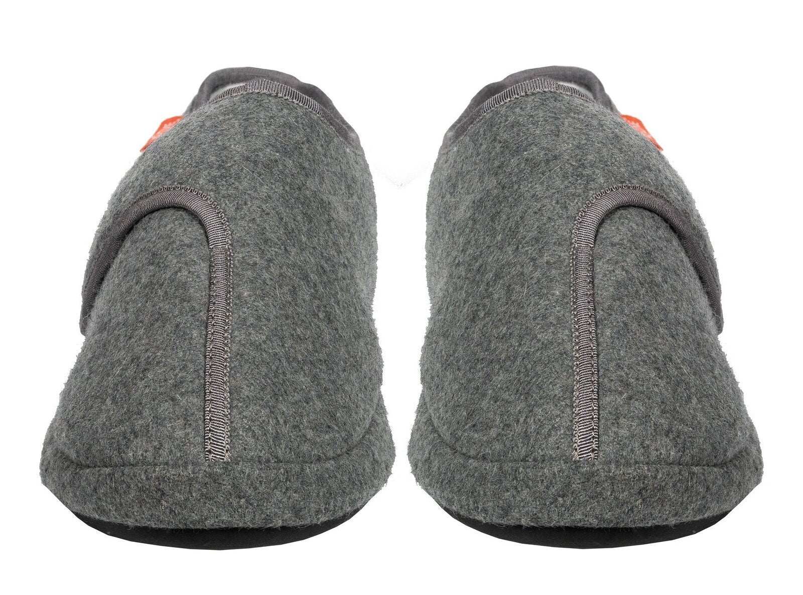 The Plus Slippers have an adjustable Velcro closure at the front of the shoe. Ideal for narrow and wide feet or flexibility challenged wearers.
