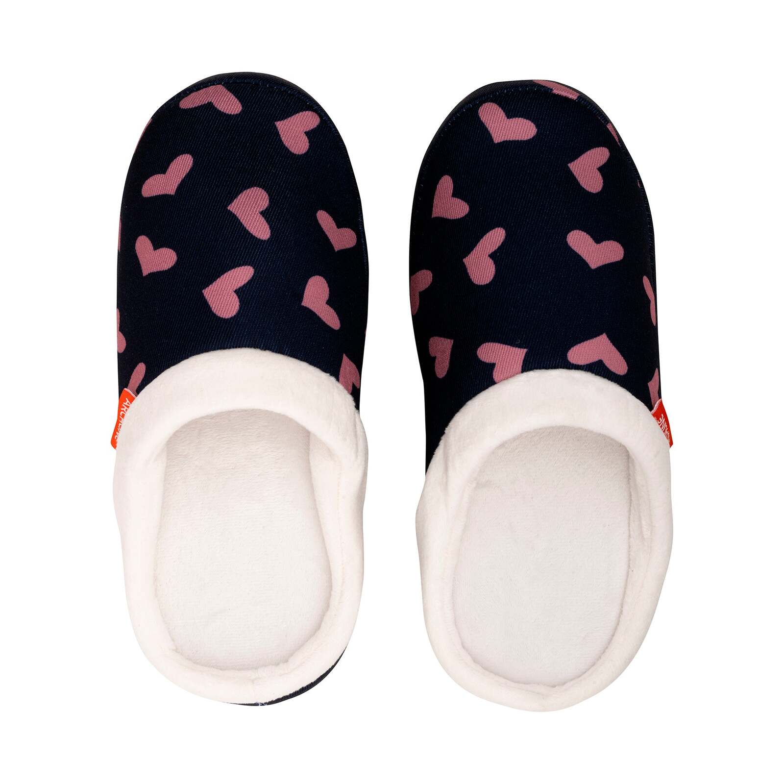 ARCHLINE Orthotic Slippers Slip On Scuffs Pain Relief Moccasins - Navy with Hearts - EUR 36 (Womens US 5)
