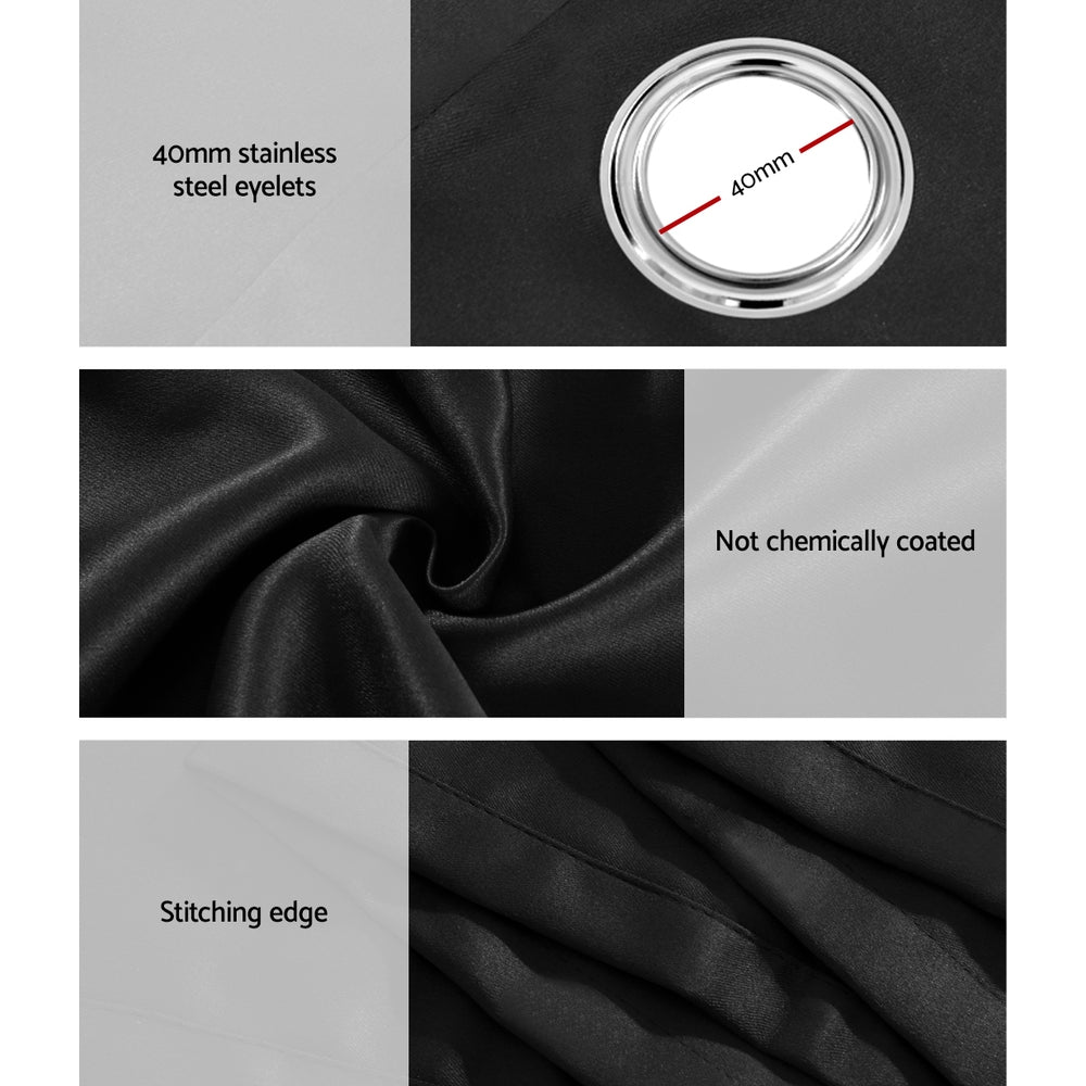 2X 132x213cm Blockout Sheer Curtains Black