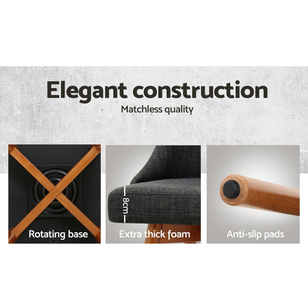 2x Bar Stools Swivel Seat Wooden Charcoal